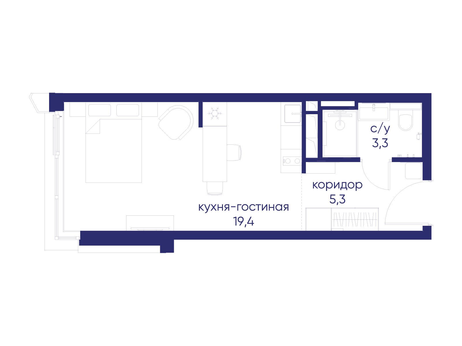 - Общая площадь 28.02 м²