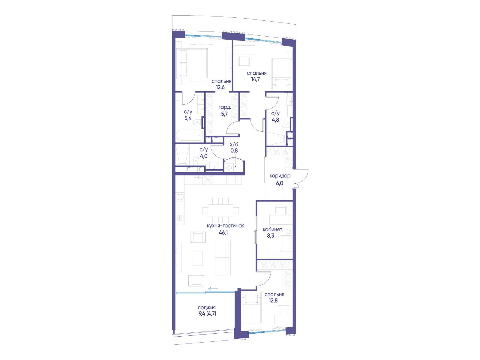 Продаётся четырехкомнатная квартира от застройщика: общая площадь 125.92 м², жилая 48.40 м², кухня 46.10 м², 14, жилой квартал «Остров 7», корпус 4 (7 квартал) (секция 1). срок сдачи: 4-кв. 2025. , 3 санузла: 3 совмещенных. В жилой зоне 2 больших окна на одну сторону, хорошая инсоляция. Позвоните сейчас и забронируйте квартиру! Купите квартиру в доме у прибрежного парка, в квартале ОСТРОВ.7. Это семь корпусов премиум- и бизнес-класса в одном из лучших мест ОСТРОВА - между бульваром и парком, поблизости от реки. Стильные корпуса имеют узнаваемый вид благодаря бионической пластике фасадов, приподнятых над землей. Для жителей предусмотрены детский клуб, фитнес-рум, коворкинг, переговорные, лаунжи. На крышах устроены видовые общественные пространства с зонами для отдыха и спорта. Двор расположен на двух уровнях: нижний ландшафтный парк и верхняя городская терраса. ОСТРОВ.7 - часть жилого комплекса на западе Москвы, в 15 минутах езды от центра. Это настоящий заповедник посреди большого города, в окружении реки и 650 га заповедников. Здесь все необходимое находится по соседству: от детского сада до супермаркета, от фитнес-зала до серфинг-центра. На территории созданы все условия для отдыха и общения: клубная инфраструктура в домах и дворы-парки, набережные и променады, маршруты для спортсменов, детей и возрастных жителей. В нескольких минутах ходьбы расположена станция метро "Терехово" БКЛ. На автомобиле - 10 минут до Москва-Сити и 15 минут до Садового кольца.