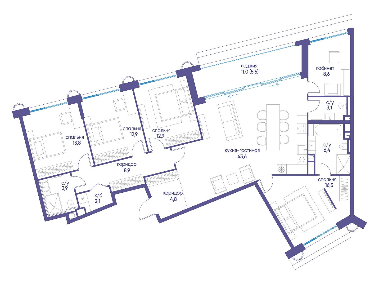 Продаётся многокомнатная квартира от застройщика: общая площадь 142.02 м², жилая 64.70 м², кухня 43.60 м², 9, жилой квартал «Остров 7», корпус 7 (7 квартал) (секция 1). срок сдачи: 4-кв. 2025. , 3 санузла: 1 раздельный и 2 совмещенных. В жилой зоне 2 больших окна на одну сторону, хорошая инсоляция. Позвоните сейчас и забронируйте квартиру! Купите квартиру в доме у прибрежного парка, в квартале ОСТРОВ.7. Это семь корпусов премиум- и бизнес-класса в одном из лучших мест ОСТРОВА - между бульваром и парком, поблизости от реки. Стильные корпуса имеют узнаваемый вид благодаря бионической пластике фасадов, приподнятых над землей. Для жителей предусмотрены детский клуб, фитнес-рум, коворкинг, переговорные, лаунжи. На крышах устроены видовые общественные пространства с зонами для отдыха и спорта. Двор расположен на двух уровнях: нижний ландшафтный парк и верхняя городская терраса. ОСТРОВ.7 - часть жилого комплекса на западе Москвы, в 15 минутах езды от центра. Это настоящий заповедник посреди большого города, в окружении реки и 650 га заповедников. Здесь все необходимое находится по соседству: от детского сада до супермаркета, от фитнес-зала до серфинг-центра. На территории созданы все условия для отдыха и общения: клубная инфраструктура в домах и дворы-парки, набережные и променады, маршруты для спортсменов, детей и возрастных жителей. В нескольких минутах ходьбы расположена станция метро "Терехово" БКЛ. На автомобиле - 10 минут до Москва-Сити и 15 минут до Садового кольца.