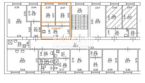 1704924 Продаются две раздельные комнаты с отдельной кухней - небольшой аналог двухкомнатной квартиры без сан узла, но с кухней. Итого площадь в пользовании 27 кв.м.