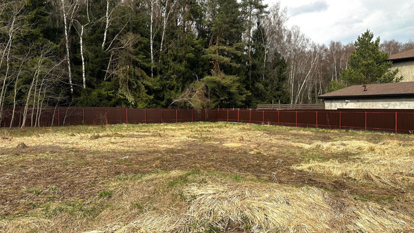 Сухой, ровный участок со своим выходом в лес. Территория поселка огорожена и круглосуточно охраняется. Соседи живут постоянно.
