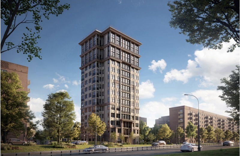 Новый клубный дом «Счастье на Ломоносовском» - это 13-этажное здание, в котором предусмотрено 56 квартир, их площадь варьируется от 68,9 до 172,8 кв. м, а высота потолков – от 3,55 м до 6,35 м на двух верхних этажах. На последнем этаже в каждой из трех квартир предусмотрена также возможность установки дровяного камина.
