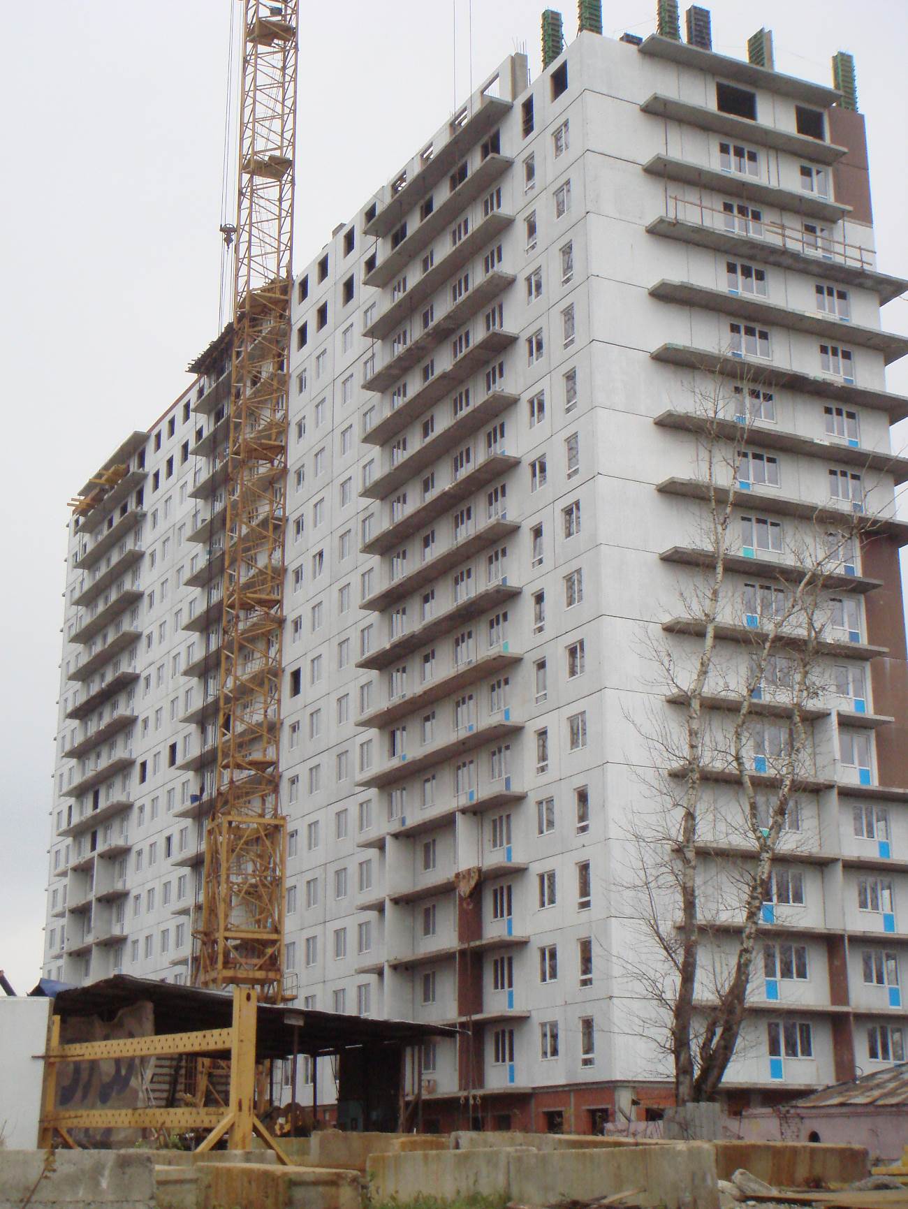 На сегодняшний день на завершающем этапе строительства находятся два корпуса. В корпусе №7 полностью выполнены монолитные конструкции из железобетона, завершен монтаж железобетонных балконных ограждений, полностью выполнено устройство межквартирных перегородок из газобетонных блоков. К завершению близятся фасадные и кровельные работы. Рабочие выполняют монтаж оконных блоков и алюминиевых изделий, ведутся сварочные работы.