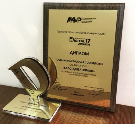 Всероссийский социальный проект #ВРЕМЯЖИТЬВРОССИИ, организованный компанией «Галс-Девелопмент», стал лауреатом V Ежегодной Премии «Digital Communications AWARDS – 2017, заняв 1 место в номинации «Социальные медиа & Сообщество. Online-конкурс». Торжественное награждение победителей состоялось 20 февраля в рамках V ежегодной конференции «Digital-коммуникации России – 2017» в пространстве «ФРИИ Сити-Холл».