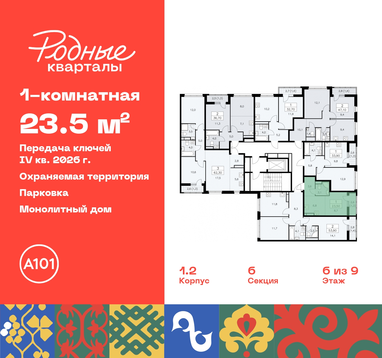 Однокомнатная квартира-студия с отделкой в ЖК "Родные кварталы" на 6 этаже. Общая площадь: 23.5 кв.м., площадь гостиной 15.5 кв.м., из которых 6.8 кв.м. выделено под кухонную зону. Все окна выходят на одну сторону. В квартире один балкон, один совмещенный санузел. Высота потолков 2.9 м. Дом монолитный, многоподъездный, высотой 9 этажей. Квартира находится в 5-й секции в корпусе 1.2. На этаже 7 квартир. В подъезде 1 грузовой лифт. Начало строительства - 4 квартал 2023 года. Окончание строительства - 4 квартал 2026 года. Оформление сделки по договору долевого участия. Артикул квартиры по базе застройщика 96К-1.2-325. Новый жилой комплекс "Родные кварталы" строится в уютной, экологически благополучной локации на юго-западе столицы. В ближайшем окружении – ухоженные малоэтажные посёлки и живописный Ульяновский лесопарк. Благодаря этому из окон откроются вдохновляющие виды, которые не исчезнут со временем за фасадами многоэтажек. Через весь район пройдёт главный бульвар, который свяжет набережную, жилые кварталы и площади в единое дружелюбное пространство, органично наполненное узнаваемыми элементами культурных традиций разных народов. В жилом комплексе создаются условия для комфортного отдыха и занятий спортом всех жителей. Здесь можно прогуляться и отдохнуть в лесопарке на берегу ручья, позаниматься на тренажёрах под открытым небом и спортивных площадках. Для малышей построят игровые комплексы, развивающие силу, координацию и ловкость. Всего в жилом комплексе будет оборудовано 6 га территории для спокойного отдыха и около 9 га — для активного. Подъезды в домах освещены в любое время суток, входы и вестибюль хорошо просматриваются с улицы. Витражное остекление обеспечивает приток естественного света днём, а вечером зажигаются светильники. В отделке домов используется сочетание вентилируемого фасада с облицовкой из фибробетонной плитки и штукатуркой. Комфортная высота домов соразмерна человеку и в среднем составляет 10 этажей. Все дома обеспечены собственными подземными паркингами. В них размещаются машино-места и кладовые. В паркинг или кладовую можно спуститься на лифте или по лестнице. В комплексе появятся бытовые сервисы, магазины, аптеки и другие торгово-бытовые объекты. В жилом районе «Родные кварталы» будут построены: - образовательный центр: школа на 1300 учеников и детский сад на 250 малышей, - два детских сада на 200 мест каждый (один из них сдаётся в 1-й очереди). В транспортной доступности уже работают: - школа № 41 и детский сад — по Боровскому шоссе, - школа № 2057 и детский сад — на запад от района, в дер. Марушкино. ЖК «Родные кварталы» строится в Новомосковском округе столицы, в 15 минутах на автомобиле от аэропорта «Внуково». Район обеспечен удобными выездами на три крупные современные автотрассы. Здесь уже работает и активно развивается система наземного общественного транспорта, включая междугородние рейсы. Интенсивное развитие локации обеспечивают две действующие станции крупных транспортных линий: метро (станция «Внуково») и МЦД (станция «Толстопальцево»). (AQID02318019)
