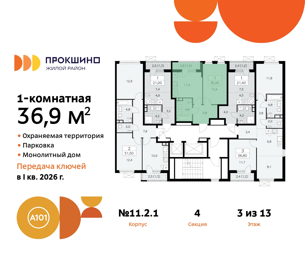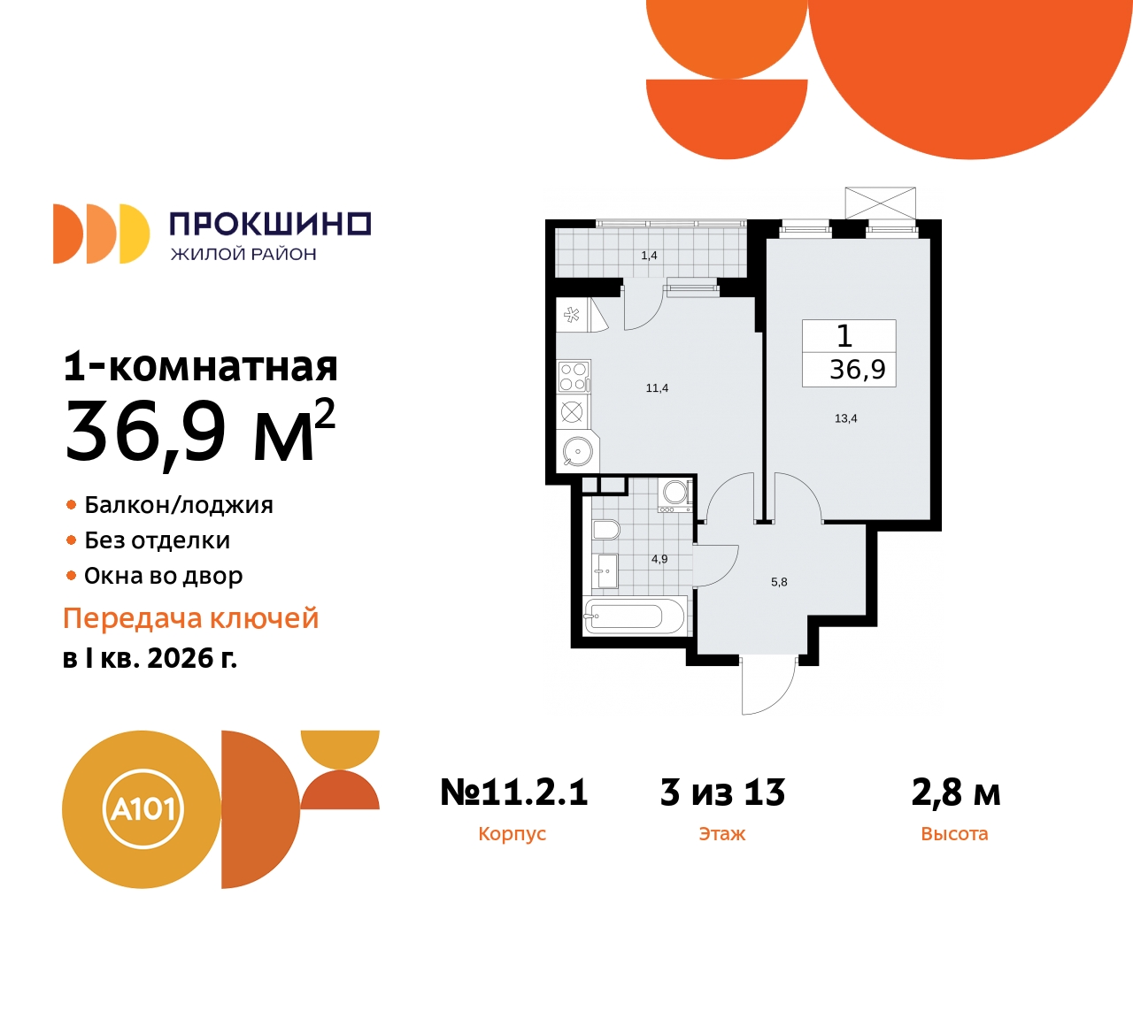 Однокомнатная квартира от застройщика в ЖК "Прокшино" на 3 этаже. Квартира без отделки, после выдачи ключей можно делать ремонт. Общая площадь: 36.9 кв.м., жилая: 13.4 кв.м., площадь просторной кухни-столовой: 11.4 кв.м. Все окна выходят на одну сторону. В квартире одна лоджия, один совмещенный санузел. Высота потолков 2.8 м. Эта квартира предлагается без отделки. Будут установлены стеклопакеты с повышенной тепло- и шумоизоляцией, в квартиру заведены все коммуникации. Вы сможете в полном объеме реализовать ваши идеи обустройства вашего комфортного дома. Дом монолитный, черырехподъездный, высотой 13 этажей. Квартира находится в 4-й секции в корпусе 11.2.1. На этаже 5 квартир. В подъезде 1 пассажирский и 1 грузовой лифт. Начало строительства - 3 квартал 2023 года. Окончание строительства - 1 квартал 2026 года. Оформление сделки по договору долевого участия. Артикул квартиры по базе застройщика 58К-11.2.1-224. В шаговой доступности от жилого комплекса находятся станции метро (расстояние по прямой): «Филатов луг» (1.4 км), «Прокшино» (1.7 км), также недалеко от этого корпуса расположены станции метро: «Саларьево», «Румянцево», «Теплый стан». ПРЕДЛОЖЕНИЯ ОТ ЗАСТРОЙЩИКА В ОКТЯБРЕ 2025: Ипотека от 13,9 % для всех! На весь срок. "Семейная ипотека" вернулась. Ставка от 3,5 % на весь срок! Без удорожания! Выгодное ипотечное комбо: Ипотека от 2200 р./мес. и от 6 % после рождения ребёнка! Ипотека для всех "Держи пять!" - ставка 5 % на 2 года! *более подробную информацию по скидкам и акциям уточняйте в отделе продаж ЖК «Прокшино» расположен в 7,6 км от МКАД в Новой Москве. В 8 минутах пешком находится станция метро "Прокшино" быстрой и комфортной красной линии метро. Высокую транспортную доступность обеспечивают и два крупных шоссе, до которых легко доехать за 5 минут по новой скоростной автотрассе Солнцево – Бутово – Варшавское шоссе. Жилой комплекс "Прокшино" входит в кластер Прокшино. В районе появятся дома комфорт и бизнес-класса с подземным паркингом, закрытыми благоустроенными дворами без машин, местами для активного и созерцательного отдыха, магазинами, бытовыми сервисами и другими коммерческими объектами. Рядом пруд с собственной набережной и городской парк «Хованская дубрава». Для маленьких жителей построят детские сады, образовательный комплекс. (AQID02269989)