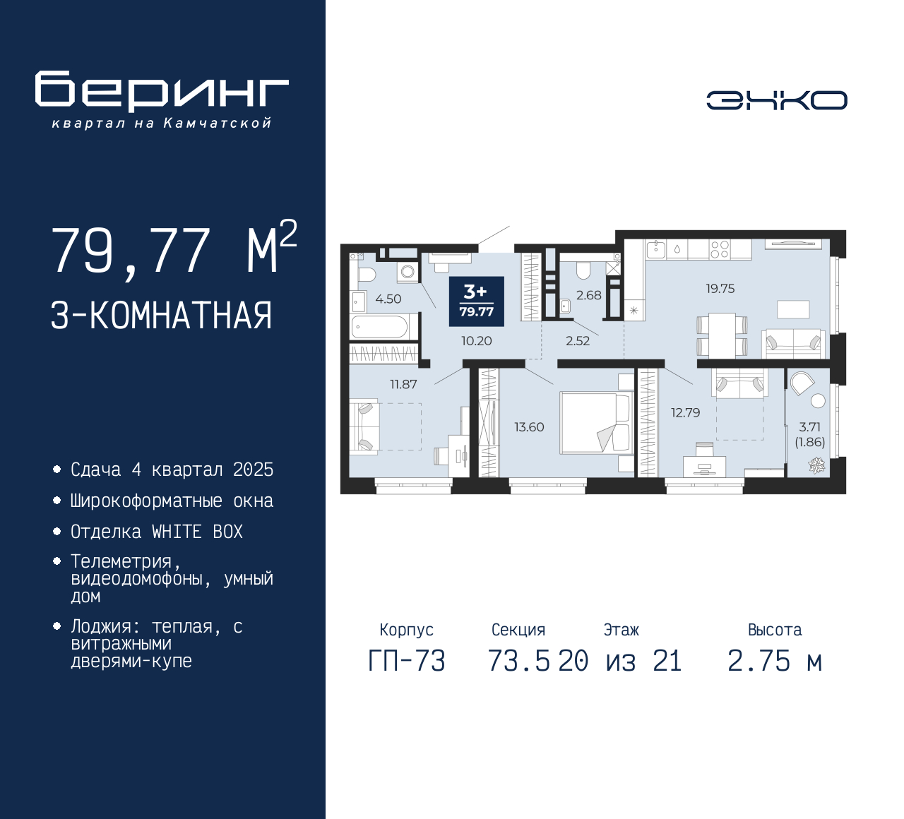 - Общая площадь 79.77 м²