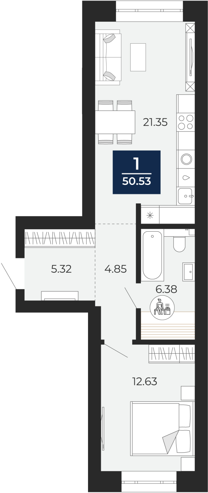 - Общая площадь 50.53 м²