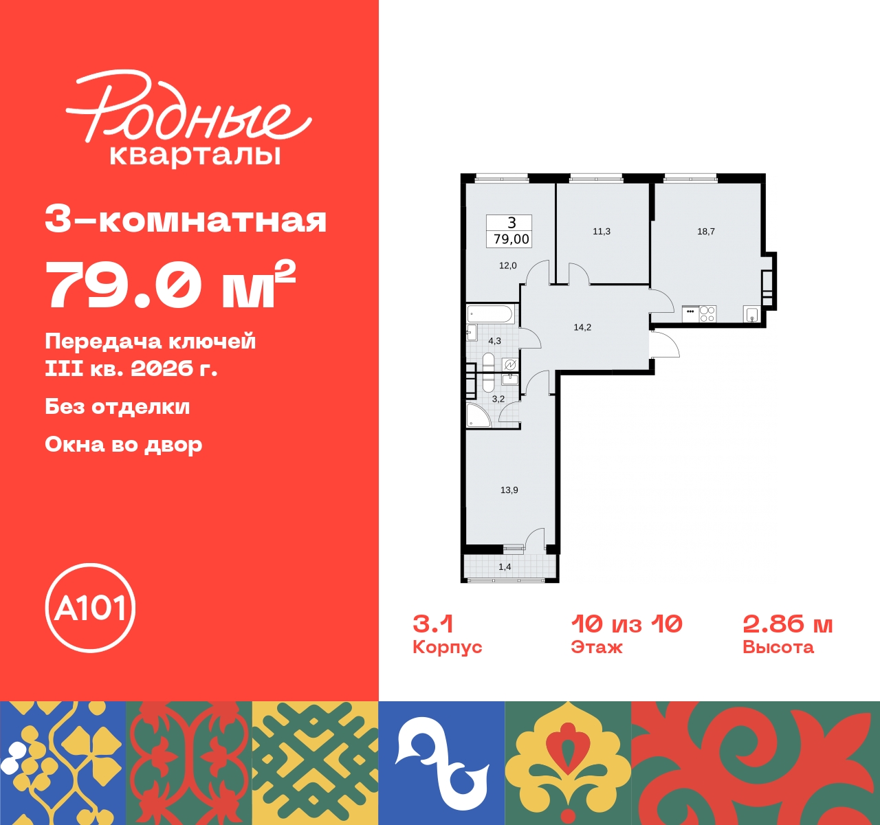 - Общая площадь 79 м²
