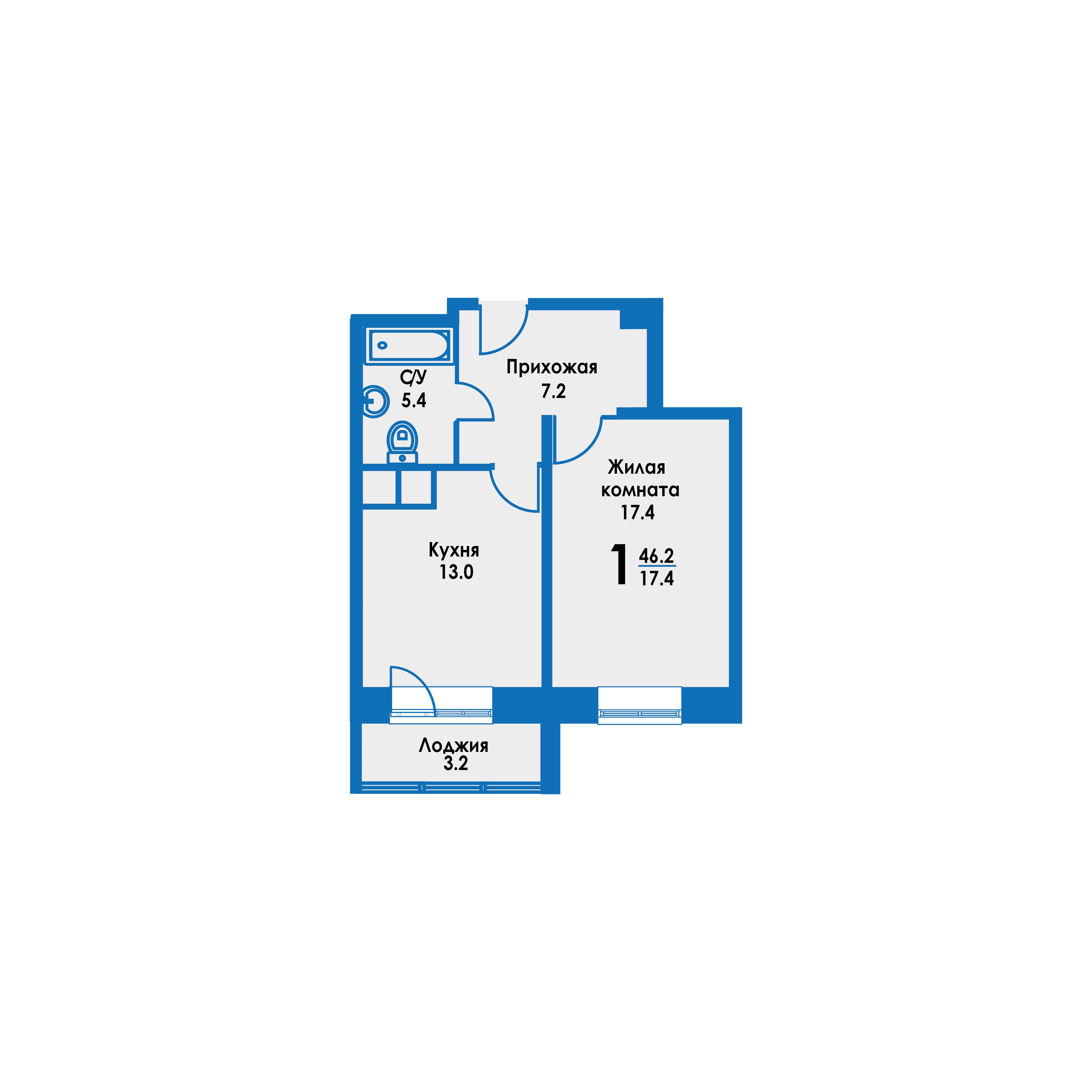 - Общая площадь 45.2 м²