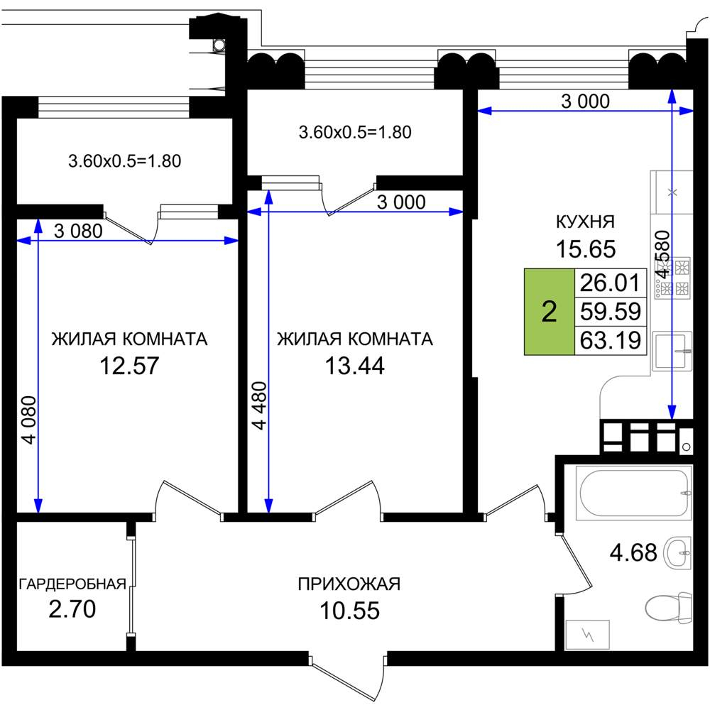 - Общая площадь 63.19 м²