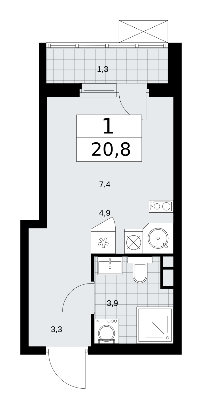 Однокомнатная квартира-студия от застройщика в ЖК "Прокшино" на 4 этаже. Квартира без отделки, после выдачи ключей можно делать ремонт. Общая площадь: 20.8 кв.м., площадь гостиной 12.3 кв.м., из которых 4.9 кв.м. выделено под кухонную зону. Все окна выходят на одну сторону. В квартире один балкон, один совмещенный санузел. Высота потолков 2.8 м. Эта квартира предлагается без отделки. Будут установлены стеклопакеты с повышенной тепло- и шумоизоляцией, в квартиру заведены все коммуникации. Вы сможете в полном объеме реализовать ваши идеи обустройства вашего комфортного дома. Дом монолитный, многоподъездный, переменной этажности, от 12 до 16 этажей. Квартира находится в 5-й секции высотой 16 этажей в корпусе 11.1.4. На этаже 5 квартир. В подъезде 1 пассажирский и 1 грузовой лифт. Начало строительства - 3 квартал 2023 года. Окончание строительства - 4 квартал 2025 года. Оформление сделки по договору долевого участия. Артикул квартиры по базе застройщика 58К-11.1.4-679. В шаговой доступности от жилого комплекса расположены станции метро (расстояние по прямой): «Филатов луг» (1.4 км), «Прокшино» (1.7 км), также недалеко от этого корпуса расположены станции метро: «Саларьево», «Румянцево», «Теплый стан». ПРЕДЛОЖЕНИЯ ОТ ЗАСТРОЙЩИКА В ОКТЯБРЕ 2025: Ипотека от 13,9 % для всех! На весь срок. "Семейная ипотека" вернулась. Ставка от 3,5 % на весь срок! Без удорожания! Выгодное ипотечное комбо: Ипотека от 2200 р./мес. и от 6 % после рождения ребёнка! Ипотека для всех "Держи пять!" - ставка 5 % на 2 года! *более подробную информацию по скидкам и акциям уточняйте в отделе продаж ЖК «Прокшино» расположен в 7,6 км от МКАД в Новой Москве. В 8 минутах пешком находится станция метро "Прокшино" быстрой и комфортной красной линии метро. Высокую транспортную доступность обеспечивают и два крупных шоссе, до которых легко доехать за 5 минут по новой скоростной автотрассе Солнцево – Бутово – Варшавское шоссе. Жилой комплекс "Прокшино" входит в кластер Прокшино. В районе появятся дома комфорт и бизнес-класса с подземным паркингом, закрытыми благоустроенными дворами без машин, местами для активного и созерцательного отдыха, магазинами, бытовыми сервисами и другими коммерческими объектами. Рядом пруд с собственной набережной и городской парк «Хованская дубрава». Для маленьких жителей построят детские сады, образовательный комплекс. (AQID02526628)