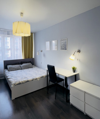 Квартира находится на 5-м этаже. Окна кухни и комнаты выходят в благоустроенный двор. Для автовладельцев предусмотрена наземная парковка, где можно безопасно оставить свой автомобиль.