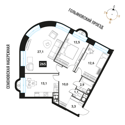 Квартира 3-комн., 83 м2, 26/28 этаж,
