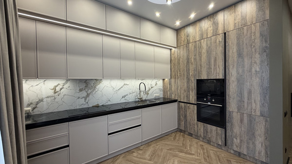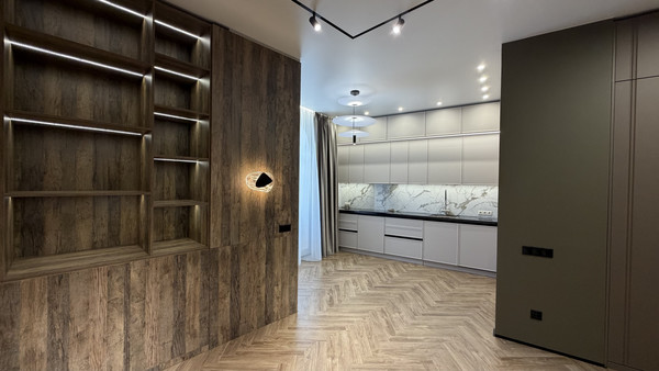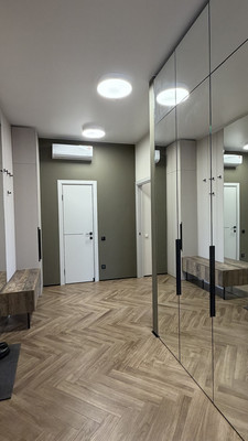 В квартире выполнен качественный ремонт, установлены кондиционеры, в санузлах теплый пол. Установлен кухонный гарнитур со встроенной техникой (холодильник, варочная поверхность, духовой шкаф, вытяжка, свч-печь, посудомоечная машина). Встроенные шкафы.