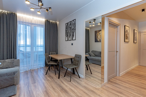 :— Кухня-гостиная 16,1 кв. м — центр жизни, общения и уюта— Две отдельные комнаты: каждая с правильной геометрией— Балкон - терраса с двумя выходами — из кухни и спальни— Высокие потолки 2,7 м создают ощущение воздуха и простора— Современная дизайнерская отделка: светло, свежо, дорого смотрится.