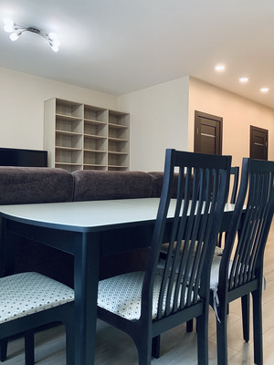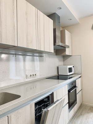 Квартира формата "Распашонка", в прихожей находится вместительный шкаф для верхней одежды, кухня 8 кв.м. с гостиной 17 кв.м. совмещена. Вид из окна выходит во двор. Солнечная сторона, предусмотрен кондиционер. В туалетной комнате находится водонагреватель Electrolux (30 литров), в уборной тропический душ, стиральная машинка Haier, место для хранения бытовой химии, зеркало с подсветкой придаст приятную атмосферу.