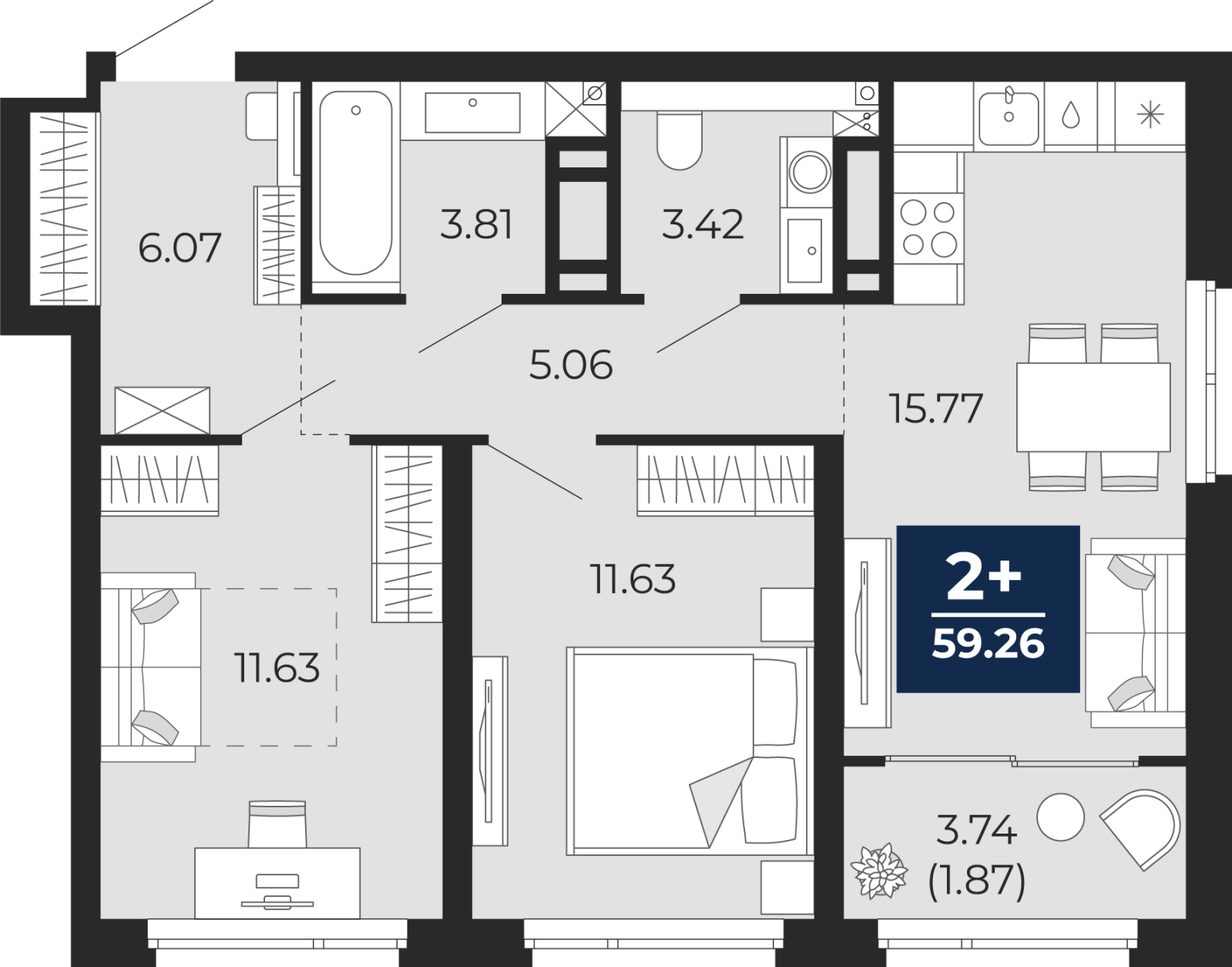 Просторная 2-комн. квартира с предчистовой отделкой в ЖК "Прео" на 11 этаже. Общая площадь: 59.26 кв.м., жилая: 23.26 кв.м., площадь просторной кухни-столовой: 15.77 кв.м. Угловая квартира, очень светлая, естественная вентиляция при открытии окон. В квартире одна лоджия, один раздельный санузел. Высота потолков 2.7 м. Квартира находится в корпусе 209. Дом монолитный, одноподъездный, высотой 22 этажа. На этаже 8 квартир. В подъезде 1 пассажирский и 1 грузовой лифт. Окончание строительства - 4 квартал 2025 года. Оформление сделки по договору долевого участия. Преображенский — один из самых привлекательных районов для жизни! Это полностью самостоятельный жилой район с точки зрения инфраструктуры. Преображенский находится между Московским и Червишевским трактами в квартале улиц Закалужская — Вьюжная — Александра Протозанова. Не нужно ждать, когда появится инфраструктура — переезжайте на всё готовое. Вблизи расположены действующие школа и детский сад. В этом году откроется еще один сад, а в следующем году — школа. По соседству с Преображенским запланировано строительство городского парка «Комарово» площадью 38 гектар. За 10 минут можно доехать на автомобиле до крупных ТРЦ: «Лента», «Кристалл», «Леруа Мерлен», «Метро» и «Ашан». С 2018 года в районе открыт Соседский центр — пространство, созданное для формирования добрососедской среды, совместного досуга, общения и реализации соседских инициатив. Здесь проходят встречи соседей, а также сами жители района организовывают мероприятия. Организатором такого события может стать любой желающий. В квартирах выполнена качественная предчистовая отделка. Гладкие стены с финишным выравниванием по маякам. Ровный потолок для установки натяжного потолка. Установлены пятикамерные окна с двойным стеклопакетом (3 стекла). Дизайнерские холлы с видеонаблюдением, безбарьерным и прозрачным входом – всегда светло и спокойно. На первом этаже есть просторные колясочные, где все жители могут оставлять свои коляски и велосипеды. В Преображенском есть всё, что нужно для активного отдыха и занятий спортом. Мы сделали большое футбольное поле с безопасным покрытием. Также установили хоккейный корт, который оборудован по всем необходимым стандартам. Во дворах можно делать упражнения на специальных площадках с турниками. Весь район мы обустроили велодорожками, которые связаны в единый маршрут. У нас есть сухие фонтаны, бьющие из земли, деревья, веревки, сетки, скалодром, газон, песок и резинка — осталось просто дать своему ребенку право на свободную игру. По-настоящему хорошие дворы — это те, которые дети предпочитают соцсетям и телевизору. (AQID02526991)