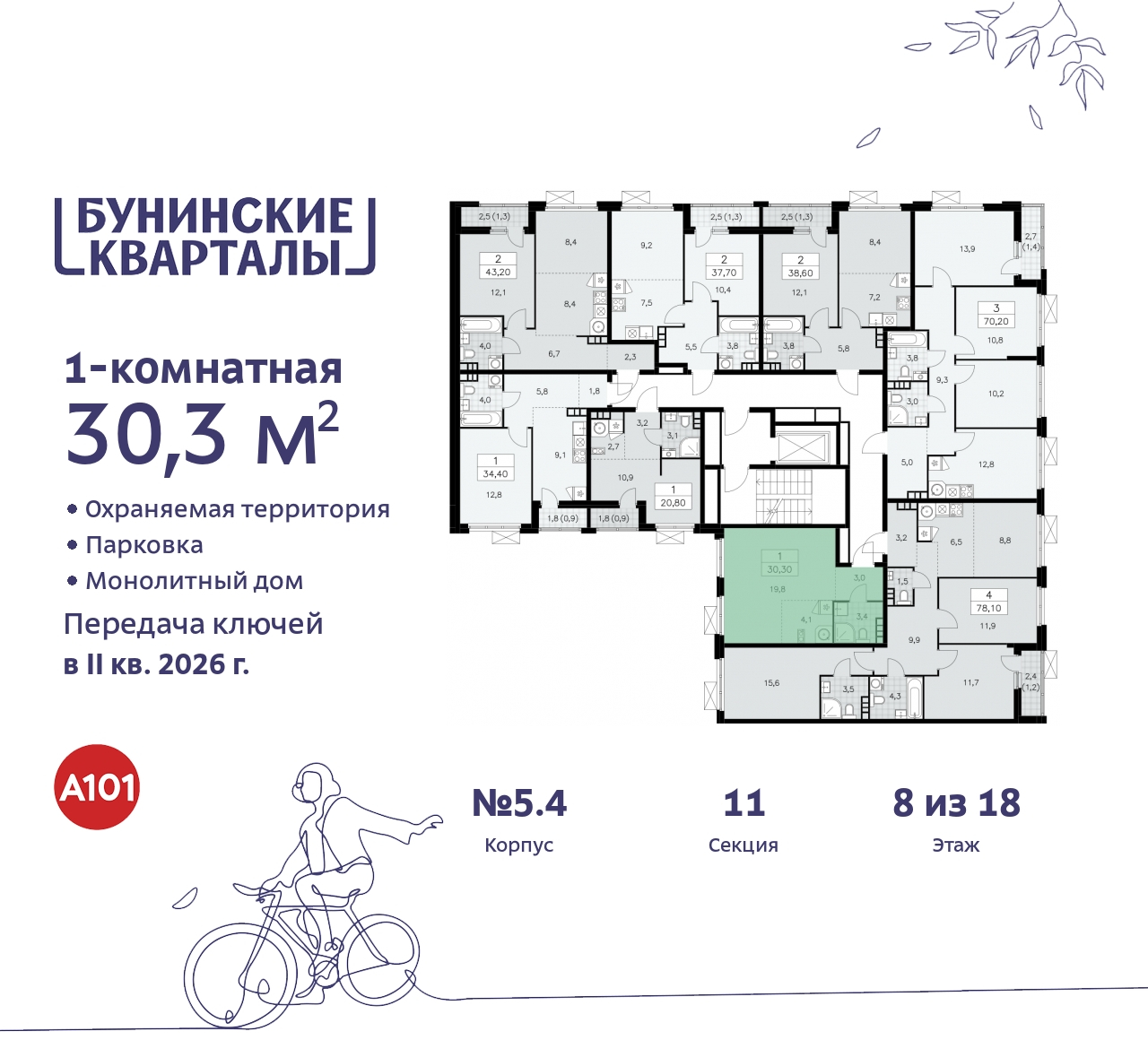 Однокомнатная квартира-студия в ЖК "Бунинские кварталы" на 8 этаже. Квартира без отделки, после оформления собственности можно делать ремонт. Общая площадь: 30.3 кв.м., площадь гостиной 23.9 кв.м., из которых 4.1 кв.м. выделено под кухонную зону. Все окна выходят на одну сторону. В квартире один совмещенный санузел. Высота потолков 2.95 м. Квартира будет сдана без отделки. Установлены стеклопакеты с повышенной тепло- и шумоизоляцией, установлены элементы отопления, входная дверь, заведены все коммуникации. Вы сможете реализовать свои дизайн-проект. Дом монолитный, черырехподъездный, переменной этажности, от 9 до 18 этажей. Квартира находится во 2-й секции высотой 9 этажей в корпусе 5.4. На этаже 8 квартир. В подъезде 1 грузовой лифт. Начало строительства - 4 квартал 2023 года. Окончание строительства - 2 квартал 2026 года. Оформление сделки по договору долевого участия. Артикул квартиры по базе застройщика 14К-5.4-983. В шаговой доступности от жилого комплекса находится станция метро (расстояние по прямой) «Потапово» (1.4 км), также недалеко от этого корпуса находятся станции метро: «Ольховая», «Бунинская аллея», «Улица Горчакова», «Коммунарка». ПРЕДЛОЖЕНИЯ ОТ ЗАСТРОЙЩИКА В ОКТЯБРЕ 2025: Ипотека от 13,9 % для всех! На весь срок. "Семейная ипотека" вернулась. Ставка от 3,5 % на весь срок! Без удорожания! Выгодное ипотечное комбо: Ипотека от 2200 р./мес. и от 6 % после рождения ребёнка! Ипотека для всех "Держи пять!" - ставка 5 % на 2 года! *более подробную информацию по скидкам и акциям уточняйте в отделе продаж. Жилой район «Бунинские кварталы» строится в Новомосковском округе столицы. До станции «Потапово» Сокольнической линии метро – 1700 метров. Вдоль северной границы района проходит проспект Куприна. Рядом проектируется автодорога МКАД – Коммунарка – Остафьево. В шаговой доступности – остановки общественного транспорта. Жители «Бунинских кварталов» будут с комфортом пользоваться полноценной и разнообразной инфраструктурой своего района и соседних районов столицы. На расстоянии 5-10 минут пешей прогулки действуют и открываются новые торговые, социальные, спортивно-развлекательные объекты. В 5 минутах езды на транспорте – гипермаркет «Глобус». Новый район из монолитных домов с безопасными закрытыми дворами и подземными паркингами строится на юго-западе Москвы, в живописном природном окружении. Рядом – крупные автомагистрали и станции метро. Но чтобы получить захватывающие впечатления и интересно провести время, жителям не нужно будет уезжать далеко от дома – достаточно пройти несколько шагов до центральной площади или благоустроенного лесопарка в южной части района. В жилом комплексе будут созданы все условия для общения и активного времяпрепровождения людей всех возрастов и разнообразных увлечений. Его наполнит особенная дружелюбная атмосфера, в которой легко завязываются контакты, взрослые и дети делятся увлечениями, демонстрируют свои таланты. Проект комплексного благоустройства района разрабатывает профессиональное архитектурное бюро «ПланАр». Его главная идея – «Выходи гулять!» Общественные пространства организованы так, чтобы обеспечить одновременно и взаимодействие, и разделение активностей для людей разных возрастных групп и интересов. (AQID02297811)