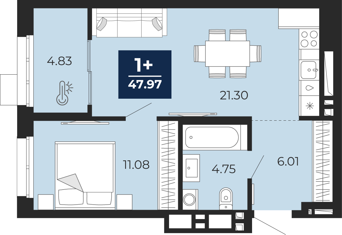 Просторная однокомнатная квартира с предчистовой отделкой в ЖК "Беринг" на 13 этаже. Общая площадь: 47.97 кв.м., жилая: 11.08 кв.м., площадь просторной кухни-столовой: 21.3 кв.м. Все окна выходят на одну сторону. В квартире одна лоджия, один совмещенный санузел. Высота потолков 2.72 м. Дом монолитный, черырехподъездный, переменной этажности, от 19 до 24 этажей. Квартира находится в 3-й секции высотой 24 этажа в корпусе ГП-76. На этаже 6 квартир. В подъезде 1 пассажирский и 1 грузовой лифт. Окончание строительства - 4 квартал 2027 года. Оформление сделки по договору долевого участия. Подобно знаменитому исследователю, мы чувствуем себя первооткрывателями этой локации. Хотим показать новую суть места, сформировать для вас жизненный опыт, которого ещё не было. Беринг — район зелёного цвета. Беринг — район, который откроется вам с другой стороны. Впечатлит новым уровнем комфорта и качеством жизни. Беринг — открытие на карте города. Первый квартал расположен в районе Тура, в границах улиц: Камчатская – Западносибирская – Энтузиастов. Вокруг уже есть всё для того, чтобы ежедневная рутина была лишь частью жизни и не доставляла дискомфорта. Школы и детские сады, магазины и аптеки, поликлиника, места для семейного отдыха, пеших и велопрогулок, и даже рыбалки. Масштабное озеленение дворов — визитная карточка ЭНКО и ваш оазис спокойствия, чтобы отвлечься от повседневности. Раскидистые деревья, кустарники, травы и цветы — осталось остановиться, вдохнуть и расслабиться, глядя на эту природную красоту. Стилистика подъездов продолжает концепцию Беринга, вдохновлённого Камчаткой: сдержанный, но при этом впечатляющий дизайн соседствует с удобством и функциональностью. (AQID02529273)