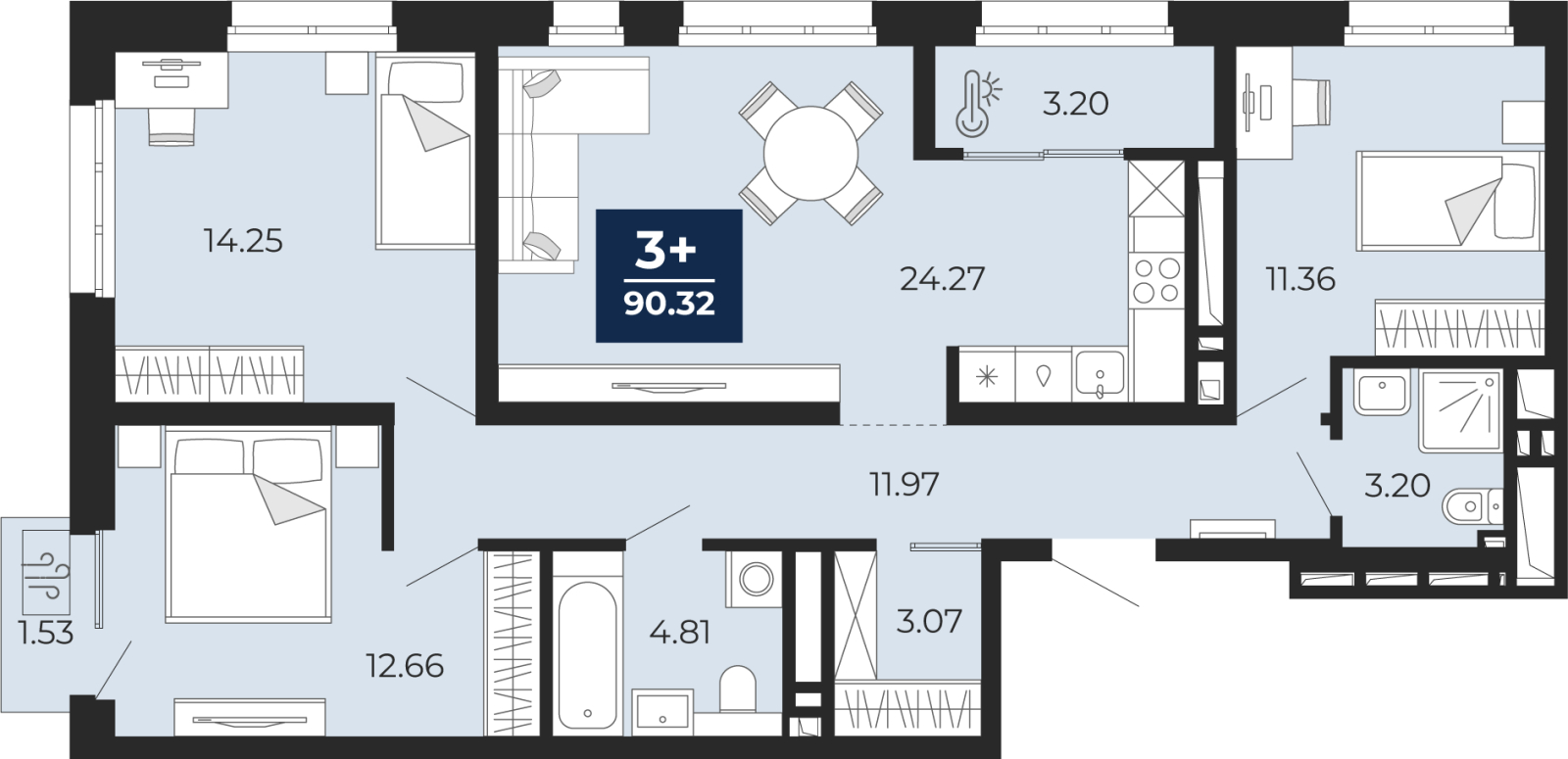 Продается 3-комн. квартира с предчистовой отделкой в ЖК "Беринг" на 10 этаже. Общая площадь: 89.25 кв.м., жилая: 38.27 кв.м., площадь просторной кухни-столовой: 24.27 кв.м. Угловая квартира, очень светлая, естественная вентиляция при открытии окон. В квартире один балкон и одна лоджия, два совмещенных санузла. Высота потолков 2.72 м. Дом монолитный, черырехподъездный, переменной этажности, от 19 до 24 этажей. Квартира находится в 3-й секции высотой 24 этажа в корпусе ГП-76. На этаже 6 квартир. В подъезде 1 пассажирский и 1 грузовой лифт. Окончание строительства - 4 квартал 2027 года. Оформление сделки по договору долевого участия. Подобно знаменитому исследователю, мы чувствуем себя первооткрывателями этой локации. Хотим показать новую суть места, сформировать для вас жизненный опыт, которого ещё не было. Беринг — район зелёного цвета. Беринг — район, который откроется вам с другой стороны. Впечатлит новым уровнем комфорта и качеством жизни. Беринг — открытие на карте города. Первый квартал расположен в районе Тура, в границах улиц: Камчатская – Западносибирская – Энтузиастов. Вокруг уже есть всё для того, чтобы ежедневная рутина была лишь частью жизни и не доставляла дискомфорта. Школы и детские сады, магазины и аптеки, поликлиника, места для семейного отдыха, пеших и велопрогулок, и даже рыбалки. Масштабное озеленение дворов — визитная карточка ЭНКО и ваш оазис спокойствия, чтобы отвлечься от повседневности. Раскидистые деревья, кустарники, травы и цветы — осталось остановиться, вдохнуть и расслабиться, глядя на эту природную красоту. Стилистика подъездов продолжает концепцию Беринга, вдохновлённого Камчаткой: сдержанный, но при этом впечатляющий дизайн соседствует с удобством и функциональностью. (AQID02529341)