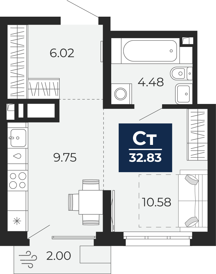 Квартира 1-комн., 31 м2, 9/17 этаж,