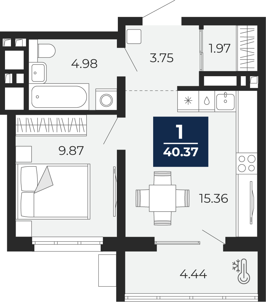 Просторная 1-комн. квартира с предчистовой отделкой в ЖК "Беринг" на 6 этаже. Общая площадь: 38.15 кв.м., жилая: 9.87 кв.м., площадь просторной кухни-столовой: 15.36 кв.м. Все окна выходят на одну сторону. В квартире один балкон, один совмещенный санузел. Высота потолков 2.72 м. Дом монолитный, многоподъездный, переменной этажности, от 17 до 24 этажей. Квартира находится во 2-й секции высотой 19 этажей в корпусе ГП-75. На этаже 7 квартир. В подъезде 2 пассажирских и 1 грузовой лифт. Окончание строительства - 4 квартал 2027 года. Оформление сделки по договору долевого участия. Подобно знаменитому исследователю, мы чувствуем себя первооткрывателями этой локации. Хотим показать новую суть места, сформировать для вас жизненный опыт, которого ещё не было. Беринг — район зелёного цвета. Беринг — район, который откроется вам с другой стороны. Впечатлит новым уровнем комфорта и качеством жизни. Беринг — открытие на карте города. Первый квартал расположен в районе Тура, в границах улиц: Камчатская – Западносибирская – Энтузиастов. Вокруг уже есть всё для того, чтобы ежедневная рутина была лишь частью жизни и не доставляла дискомфорта. Школы и детские сады, магазины и аптеки, поликлиника, места для семейного отдыха, пеших и велопрогулок, и даже рыбалки. Масштабное озеленение дворов — визитная карточка ЭНКО и ваш оазис спокойствия, чтобы отвлечься от повседневности. Раскидистые деревья, кустарники, травы и цветы — осталось остановиться, вдохнуть и расслабиться, глядя на эту природную красоту. Стилистика подъездов продолжает концепцию Беринга, вдохновлённого Камчаткой: сдержанный, но при этом впечатляющий дизайн соседствует с удобством и функциональностью. (AQID02529561)