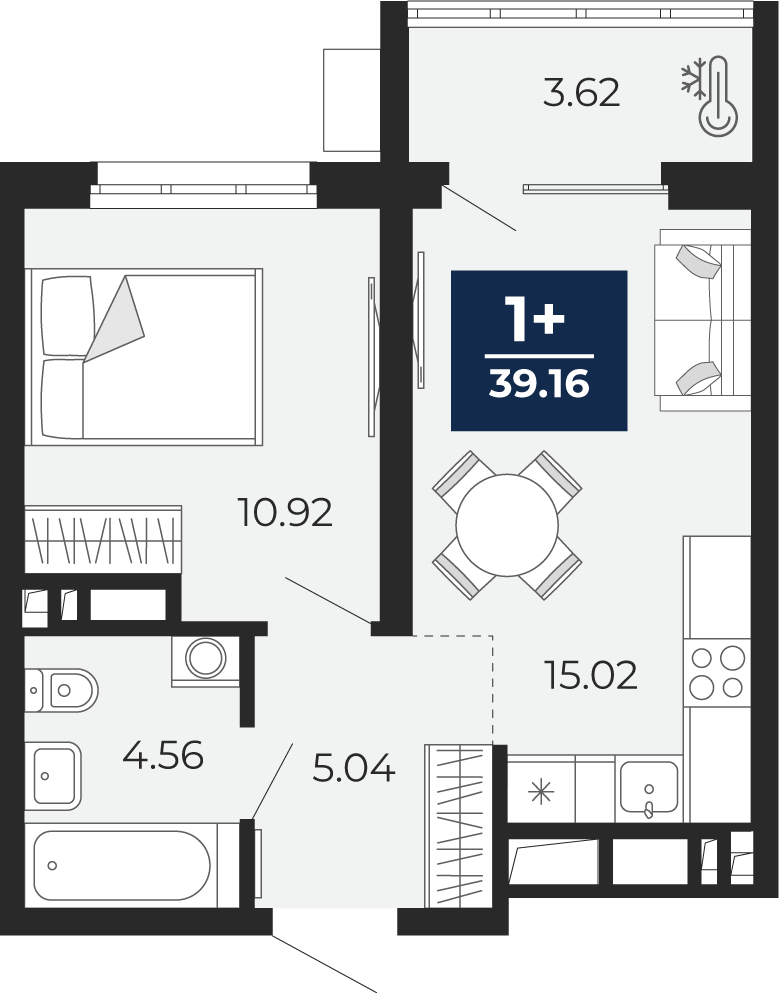 • Жилая площадь 10.92 м²