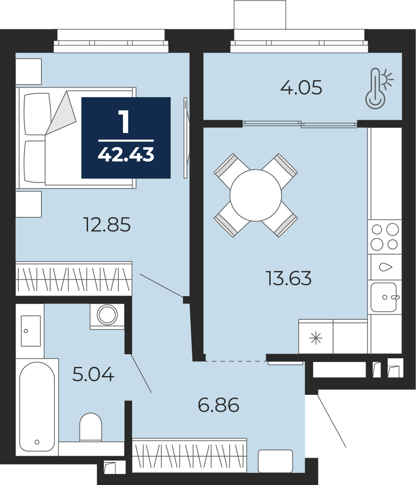 Продается 1-комн. квартира с предчистовой отделкой в ЖК "Беринг" на 6 этаже. Общая площадь: 42.43 кв.м., жилая: 12.85 кв.м., площадь просторной кухни-столовой: 13.63 кв.м. Все окна выходят на одну сторону. В квартире одна лоджия, один совмещенный санузел. Высота потолков 2.72 м. Дом монолитный, многоподъездный, переменной этажности, от 17 до 24 этажей. Квартира находится во 2-й секции высотой 19 этажей в корпусе ГП-75. На этаже 7 квартир. В подъезде 2 пассажирских и 1 грузовой лифт. Окончание строительства - 4 квартал 2027 года. Оформление сделки по договору долевого участия. Подобно знаменитому исследователю, мы чувствуем себя первооткрывателями этой локации. Хотим показать новую суть места, сформировать для вас жизненный опыт, которого ещё не было. Беринг — район зелёного цвета. Беринг — район, который откроется вам с другой стороны. Впечатлит новым уровнем комфорта и качеством жизни. Беринг — открытие на карте города. Первый квартал расположен в районе Тура, в границах улиц: Камчатская – Западносибирская – Энтузиастов. Вокруг уже есть всё для того, чтобы ежедневная рутина была лишь частью жизни и не доставляла дискомфорта. Школы и детские сады, магазины и аптеки, поликлиника, места для семейного отдыха, пеших и велопрогулок, и даже рыбалки. Масштабное озеленение дворов — визитная карточка ЭНКО и ваш оазис спокойствия, чтобы отвлечься от повседневности. Раскидистые деревья, кустарники, травы и цветы — осталось остановиться, вдохнуть и расслабиться, глядя на эту природную красоту. Стилистика подъездов продолжает концепцию Беринга, вдохновлённого Камчаткой: сдержанный, но при этом впечатляющий дизайн соседствует с удобством и функциональностью. (AQID02529603)