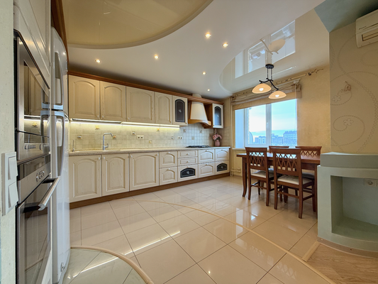 В квартире качественный дорогостоящий евроремонт по индивидуальному дизайн-проекту, с использованием исключительно экологичных импортных материалов, выполнен профессиональной строительной бригадой. Ремонт делали для себя, сил и средств не жалели. Тёплые полы, подвесные потолки, грамотная расстановка света по всему периметру квартиры, авторская мебель под заказ, качественная импортная бытовая техника, видеодомофон, сигнализация, система кондиционирования, бойлеры.