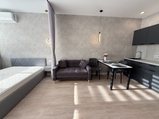 Квартира светлая, стильная и уютная. Современная и функциональная планировка, задействован каждый сантиметр полезной площади: просторная кухня-гостиная, большая вместительная гардеробная, практичный саузел с ванной и тропическим душем, дизайнерская расстановка света.