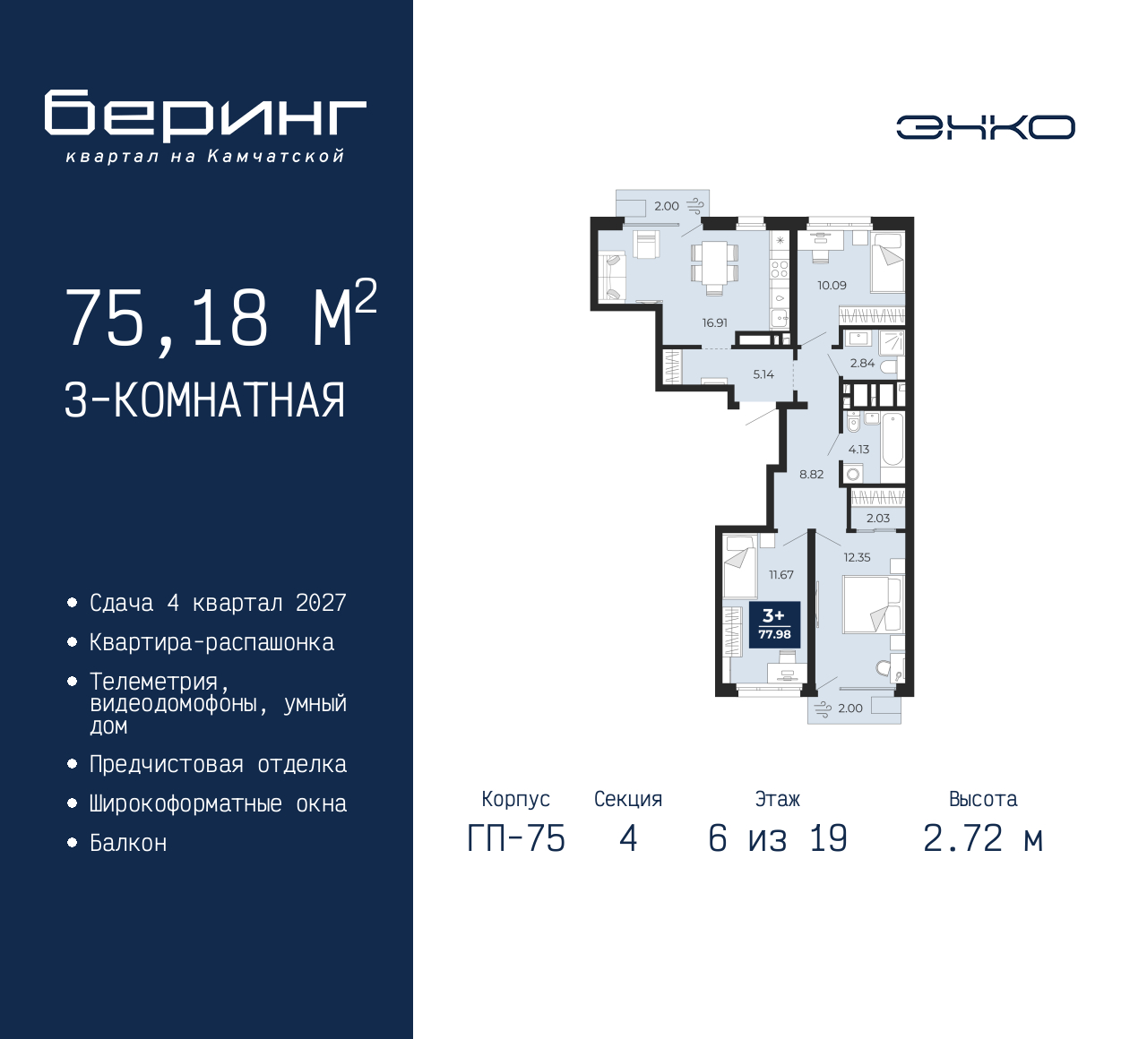 - Общая площадь 75.18 м²