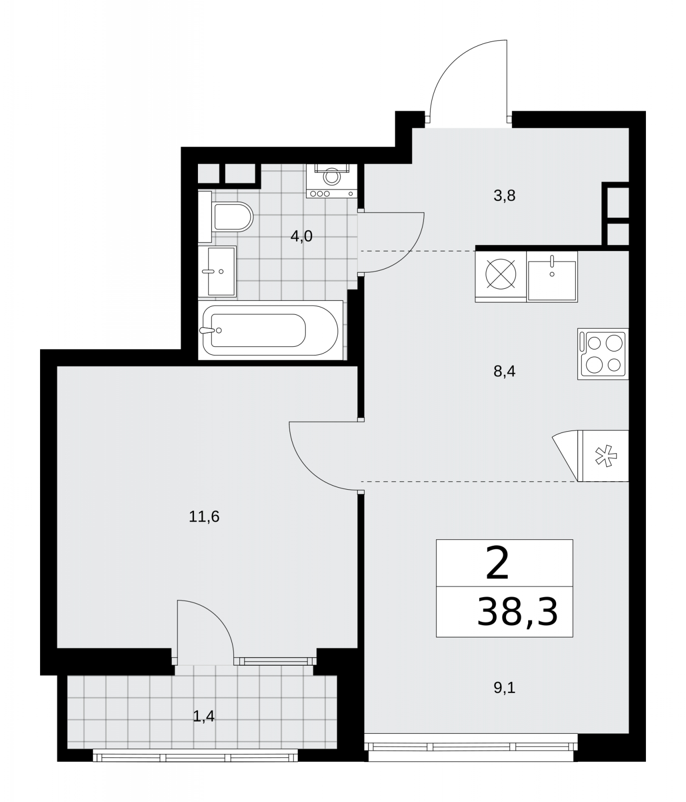 2-комн. квартира с европланировкой и предчистовой отделкой в ЖК "Деснаречье" на 4 этаже. Общая площадь: 38.3 кв.м., жилая: 20.7 кв.м., суммарная площадь гостиной-столовой с кухонной зоной: 17.5 кв.м. Европланировка, кухня и гостиная объединены в одно просторное помещение. Комнаты изолированные, все окна выходят на одну сторону. В квартире одна лоджия, один совмещенный санузел. Высота потолков 2.99 м. Эта квартира будет сдана с предчистовой отделкой white box – это квартира с ровными белыми стенами. Такая отделка позволяет сразу приступить к чистовой отделке: выбрать цвета и материалы для стен и полов, купить и расставить мебель и оборудование, развесить светильники и подобрать декор. При желании вы можете дозаказать дизайнерскую отделку от застройщика, на ваш выбор представлено несколько вариантов стилистических решений. Дом монолитный, черырехподъездный, высотой 15 этажей. Квартира находится в 4-й секции в корпусе 4.4. На этаже 6 квартир. В подъезде 1 пассажирский и 1 грузовой лифт. Начало строительства - 3 квартал 2023 года. Окончание строительства - 2 квартал 2026 года. Оформление сделки по договору долевого участия. Артикул квартиры по базе застройщика 88К-4.4-975. ПРЕДЛОЖЕНИЯ ОТ ЗАСТРОЙЩИКА В ОКТЯБРЕ 2025: Ипотека от 13,9 % для всех! На весь срок. "Семейная ипотека" вернулась. Ставка от 3,5 % на весь срок! Без удорожания! Выгодное ипотечное комбо: Ипотека от 2200 р./мес. и от 6 % после рождения ребёнка! Ипотека для всех "Держи пять!" - ставка 5 % на 2 года! *более подробную информацию по скидкам и акциям уточняйте в отделе продаж Масштабный проект "Деснаречье" на юго-западе Москвы, который включает три новых района («квартала»), объединённые общей идеей – воплотить в реальность мечты современных жителей столицы об интересном, комфортном и разноплановом городском пространстве в окружении рек и лесов, словно сошедших с полотен русских живописцев: - «Берег» оценят все, кому близка водная стихия: плеск волн, солнечные блики и прогулки вдоль тихого течения речи. - «Лес» утопает в зелени парков и лесов. Здесь соблюдён идеальный баланс загородного спокойствия и столичного комфорта. - «Парк», самый энергичный и яркий, отличается высокой концентрацией пространств для спорта и творчества. Жилой комплекс "Деснаречье" расположится в 12 км от МКАД по современному Калужскому шоссе. Внешний облик зданий соответствует современному стилю и стандартам, характерным и для других популярных проектов ГК «А101»: сочетание контрастных тонов, большое количество остекления, в котором отражается небо, гармония с природным окружением. Весь город - в вашем районе. Находиться на территории «15-минутного города» значит иметь всё необходимое для полноценной жизни в шаговой доступности. Маршруты в районе «Деснаречье» выстроены так, чтобы добраться до магазинов, парков, школ, салонов услуг и других объектов можно было всего за несколько минут пешком или на велосипеде. Двор закрытый от машин – это тишина, комфорт и безопасность, поэтому все машино-места (включая «семейные» и увеличенные, с возможностью установки роллетных шкафов) находятся в подземном паркинге. В паркинги можно спуститься на лифте из любого подъезда или по лестнице. Рядом с «Деснаречьем» в 2027 году планируется открытие станции метро «Десна», до которой будет удобно добраться пешком или на велосипеде. Дорога на автомобиле до перехватывающ