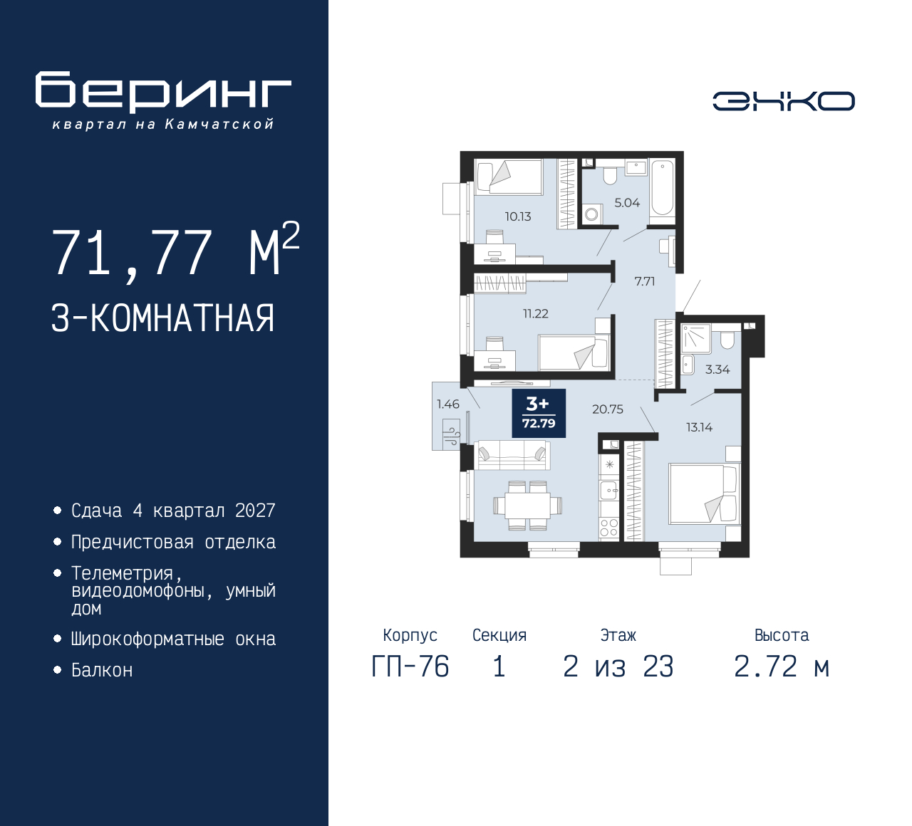 - Общая площадь 71.77 м²