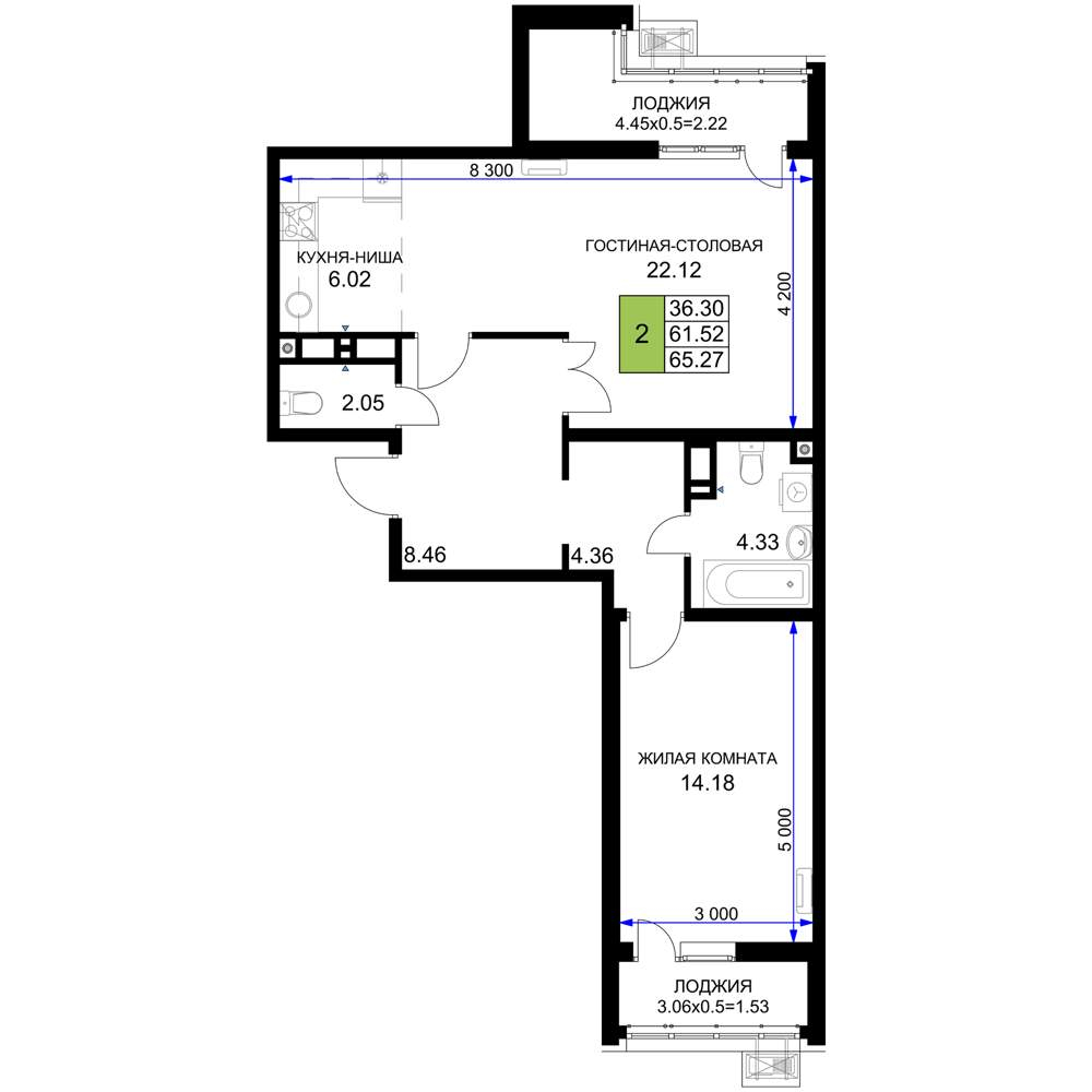 - Общая площадь 65.27 м²