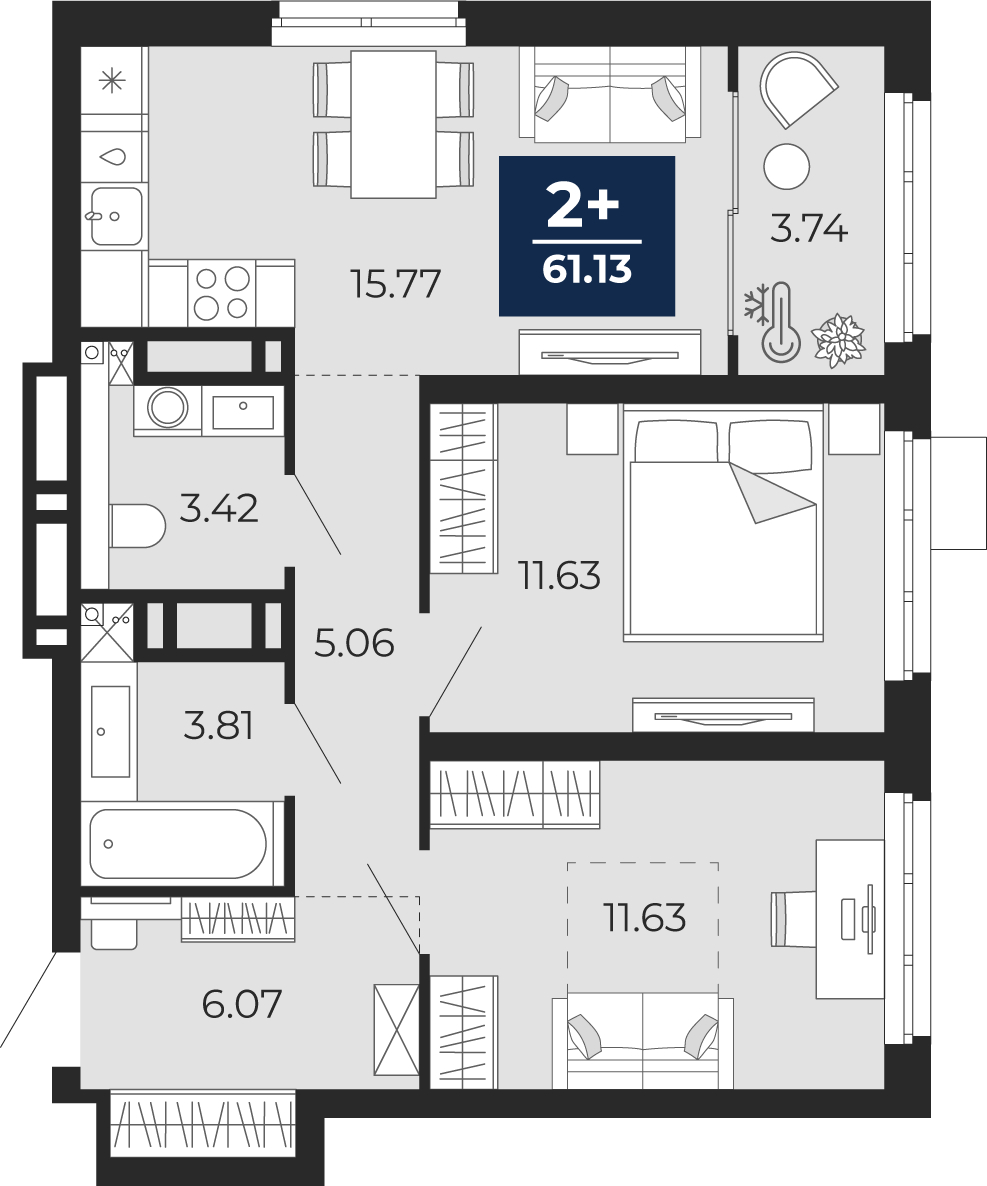 • Общая площадь 59.26 м²