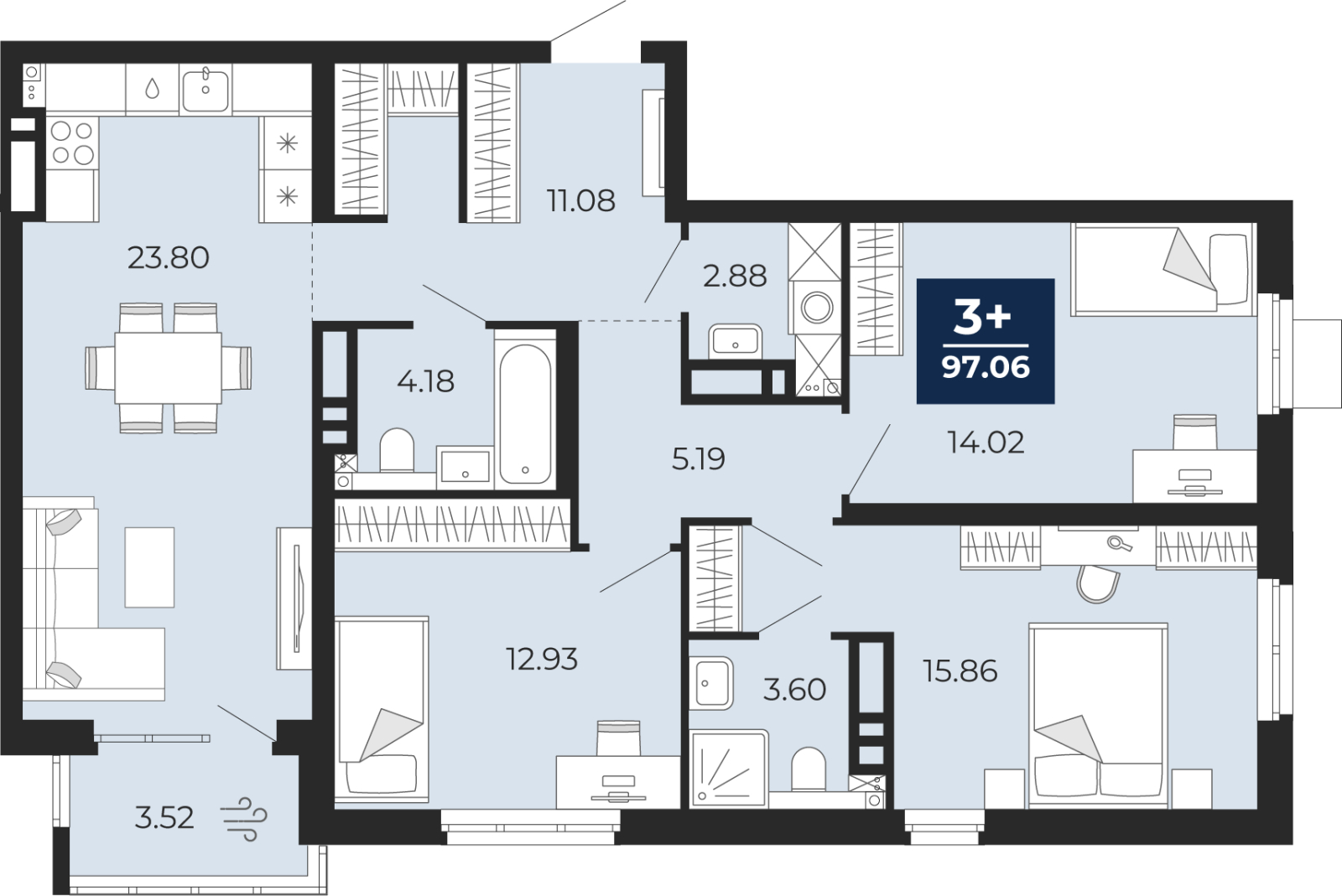 Продается трехкомнатная квартира с предчистовой отделкой в ЖК "Прео" на 8 этаже. Общая площадь: 94.6 кв.м., жилая: 42.81 кв.м., площадь просторной кухни-столовой: 23.8 кв.м. Квартира угловая, идеально подойдет любителям тишины и панорамных видов. В квартире один балкон, два совмещенных санузла. Высота потолков 2.7 м. Квартира находится в корпусе 215. Дом монолитный, одноподъездный, высотой 20 этажей. На этаже 8 квартир. В подъезде 1 пассажирский и 1 грузовой лифт. Окончание строительства - 4 квартал 2027 года. Оформление сделки по договору долевого участия. Преображенский — один из самых привлекательных районов для жизни! Это полностью самостоятельный жилой район с точки зрения инфраструктуры. Преображенский находится между Московским и Червишевским трактами в квартале улиц Закалужская — Вьюжная — Александра Протозанова. Не нужно ждать, когда появится инфраструктура — переезжайте на всё готовое. Вблизи расположены действующие школа и детский сад. В этом году откроется еще один сад, а в следующем году — школа. По соседству с Преображенским запланировано строительство городского парка «Комарово» площадью 38 гектар. За 10 минут можно доехать на автомобиле до крупных ТРЦ: «Лента», «Кристалл», «Леруа Мерлен», «Метро» и «Ашан». С 2018 года в районе открыт Соседский центр — пространство, созданное для формирования добрососедской среды, совместного досуга, общения и реализации соседских инициатив. Здесь проходят встречи соседей, а также сами жители района организовывают мероприятия. Организатором такого события может стать любой желающий. В квартирах выполнена качественная предчистовая отделка. Гладкие стены с финишным выравниванием по маякам. Ровный потолок для установки натяжного потолка. Установлены пятикамерные окна с двойным стеклопакетом (3 стекла). Дизайнерские холлы с видеонаблюдением, безбарьерным и прозрачным входом – всегда светло и спокойно. На первом этаже есть просторные колясочные, где все жители могут оставлять свои коляски и велосипеды. В Преображенском есть всё, что нужно для активного отдыха и занятий спортом. Мы сделали большое футбольное поле с безопасным покрытием. Также установили хоккейный корт, который оборудован по всем необходимым стандартам. Во дворах можно делать упражнения на специальных площадках с турниками. Весь район мы обустроили велодорожками, которые связаны в единый маршрут. У нас есть сухие фонтаны, бьющие из земли, деревья, веревки, сетки, скалодром, газон, песок и резинка — осталось просто дать своему ребенку право на свободную игру. По-настоящему хорошие дворы — это те, которые дети предпочитают соцсетям и телевизору. Аккредитация в банках: ПАО Банк «ВТБ», ОАО «Альфа-Банк», ПАО «Банк Уралсиб», ПАО «Газпромбанк», «Сбербанк России» и других. (AQID02525721)