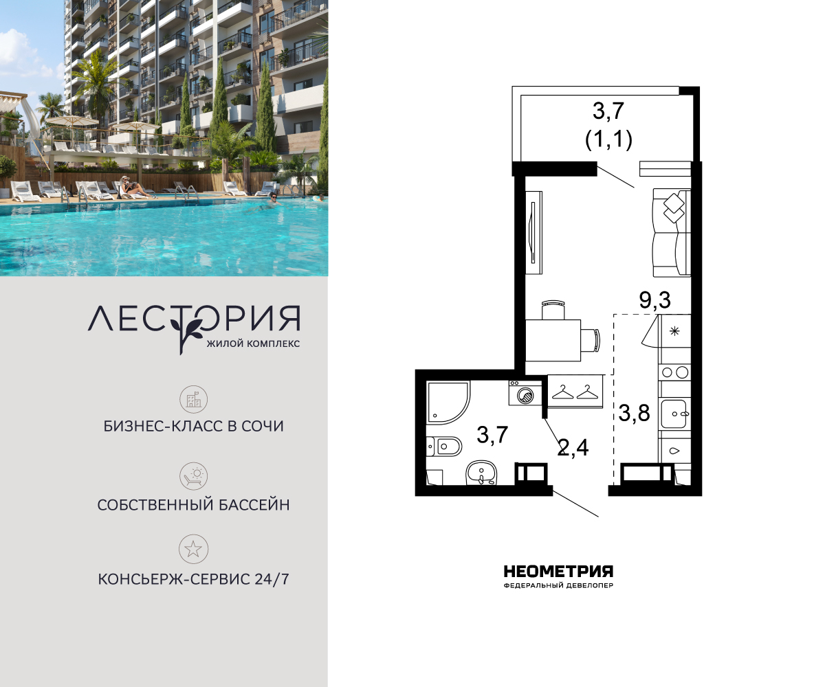 Продается квартира в жилом комплексе бизнес-класса «Лестория». В составе ЖК предусмотрена собственная аквазона площадью 473 квадратных метра с двумя подогреваемыми бассейнами, что соответствуют стандартам бизнес-класса. Аквазона объединяет взрослый и детский бассейны. В welcome-zone к услугам посетителей шезлонги и все необходимые принадлежности. Раздевалки с душевыми комнатами, инфракрасная сауна — здесь все предусмотрено для комфортного отдыха и полного расслабления. Для водного комплекса продуман отдельный вход, оборудованный системой контроля и управления доступом (СКУД). Аквазона – только часть уникальной инфраструктуры «Лестории», которая включает в себя также благоустроенную территорию с пятьюдесятью функциональными зонами для прогулок, отдыха и занятий спортом, видовые террасы на крышах для отдыха, работы и встреч с друзьями, а также пространство набережной Кудепсты с шезлонгами и перголами. Жилой комплекс «Лестория» состоит из шести домов высотностью от 15 до 17 этажей, окружённых зеленым массивом национального парка. На придомовой территории для жителей предусмотрены закрытые дворы с круглосуточным видеонаблюдением, активити-центр для детей и подростков, тихие зоны для отдыха и медитации. На крышах домов будут созданы зеленые террасы для наслаждения прекрасными видами на море и горы. В проекте предусмотрены разные варианты отделки квартир под потребности покупателей. Тем, кто хочет воплотить в жизнь собственные интерьерные задумки, подойдут квартиры без ремонта. Для комфортной жизни и отдыха в комплексе будет работать круглосуточный консьерж-сервис уровня 5*, который с легкостью закроет все ежедневные потребности: от заказа продуктов и встречи гостей в аэропорту до выгула и дрессировки питомца. К услугам жителей ЖК «Лестория» — собственная управляющая компания, для инвесторов предоставляются услуги доверительного управления. (AQID02538745)