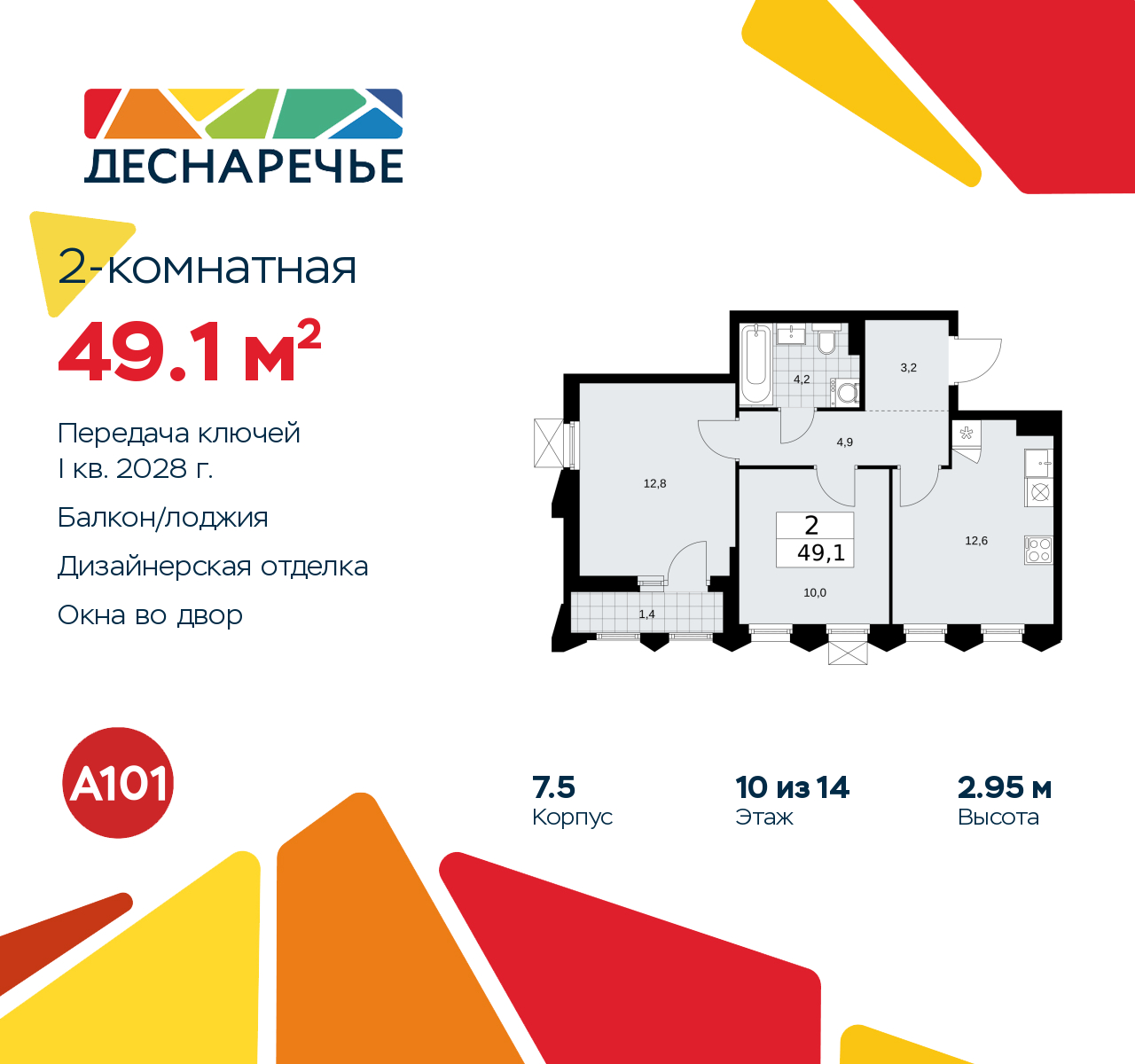 2-комн. квартира от застройщика с отделкой в ЖК "Деснаречье" на 10 этаже. Общая площадь: 49.1 кв.м., жилая: 22.8 кв.м., площадь просторной кухни-столовой: 12.6 кв.м. Угловая квартира, окна oбecпeчивaют paвнoмepнoe ocвeщeниe в тeчeниe дня. В квартире одна лоджия, один совмещенный санузел. Высота потолков 2.95 м. Эта квартира будет сдана с дизайнеркой отделкой "под ключ". Специально для вас мы разработали несколько решений дизайнерской отделки. В отделке используются только современный высококлассные материалы, на все работы предоставляется гарантия. В таком случае вы оплачиваете отделку в сегодняшних ценах, а эту стоимость вы можете разнести в ипотечных платежах. Дом монолитный, трехподъездный, переменной этажности, от 11 до 17 этажей. Квартира находится в 1-й секции высотой 11 этажей в корпусе 7.5. На этаже 5 квартир. В подъезде 1 пассажирский и 1 грузовой лифт. Начало строительства - 2 квартал 2025 года. Окончание строительства - 1 квартал 2028 года. Оформление сделки по договору долевого участия. Артикул квартиры по базе застройщика 88К-7.5-1099. Масштабный проект "Деснаречье" на юго-западе Москвы, который включает три новых района («квартала»), объединённые общей идеей – воплотить в реальность мечты современных жителей столицы об интересном, комфортном и разноплановом городском пространстве в окружении рек и лесов, словно сошедших с полотен русских живописцев: - «Берег» оценят все, кому близка водная стихия: плеск волн, солнечные блики и прогулки вдоль тихого течения речи. - «Лес» утопает в зелени парков и лесов. Здесь соблюдён идеальный баланс загородного спокойствия и столичного комфорта. - «Парк», самый энергичный и яркий, отличается высокой концентрацией пространств для спорта и творчества. Жилой комплекс "Деснаречье" расположится в 12 км от МКАД по современному Калужскому шоссе. Внешний облик зданий соответствует современному стилю и стандартам, характерным и для других популярных проектов ГК «А101»: сочетание контрастных тонов, большое количество остекления, в котором отражается небо, гармония с природным окружением. Весь город - в вашем районе. Находиться на территории «15-минутного города» значит иметь всё необходимое для полноценной жизни в шаговой доступности. Маршруты в районе «Деснаречье» выстроены так, чтобы добраться до магазинов, парков, школ, салонов услуг и других объектов можно было всего за несколько минут пешком или на велосипеде. Двор закрытый от машин – это тишина, комфорт и безопасность, поэтому все машино-места (включая «семейные» и увеличенные, с возможностью установки роллетных шкафов) находятся в подземном паркинге. В паркинги можно спуститься на лифте из любого подъезда или по лестнице. Рядом с «Деснаречьем» в 2027 году планируется открытие станции метро «Десна», до которой будет удобно добраться пешком или на велосипеде. Дорога на автомобиле до перехватывающих парковок станций «Ольховая» и «Прокшино» займёт около 10 минут. В процессе реализации проекта будут появляться новые маршруты общественного транспорта по районам. Уже сейчас на Калужском шоссе развита сеть наземного транспорта: два десятка автобусов и маршрутных такси прибывают на остановки с интервалом 5–10 минут. (AQID02491387)