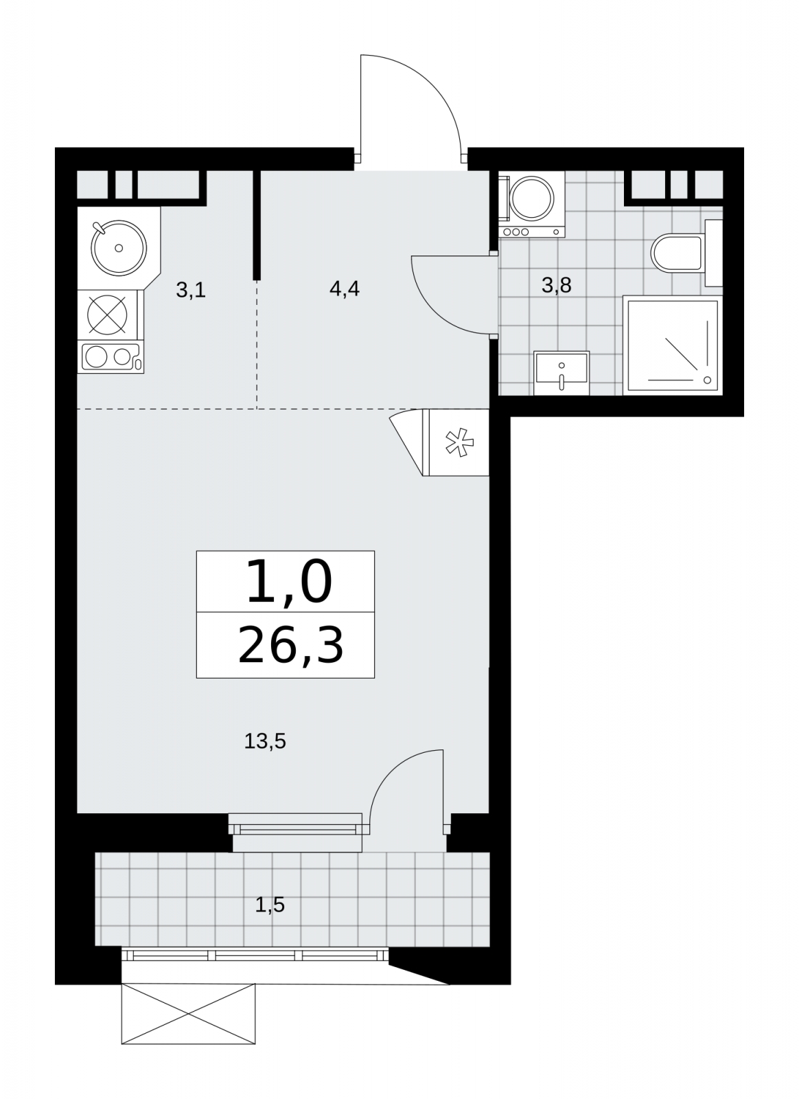 Продается 1-комн. квартира бизнес-класса-студия с предчистовой отделкой в ЖК "Бунинские кварталы" на 7 этаже. Общая площадь: 26.3 кв.м., площадь гостиной 16.6 кв.м., из которых 3.1 кв.м. выделено под кухонную зону. Все окна выходят на одну сторону. В квартире один балкон, один совмещенный санузел. Высота потолков 3.1 м. В квартире будет выполнена отделка WHITE BOX - это квартира с ровными белыми стенами. На полу стяжка с шумоизоляцией, стены выровнены и отшпатлеваны, потолок покрашен, выполнены выводы под освещение, проложены все электрокабели и провода с подразетниками и выключателями, готовы выводы под установку сантехники, сделана гидроизоляция. Покупка квартиры с вариантом отделки white box позволяет избежать громкого и грязного этапа ремонта. Кроме того, можно включить его стоимость в ипотеку. Дом монолитный, двухподъездный, высотой 9 этажей. Квартира находится в 1-й секции в корпусе бизнес-класса 6.2. На этаже 6 квартир. В подъезде 1 грузовой лифт. Начало строительства - 3 квартал 2023 года. Окончание строительства - 1 квартал 2026 года. Оформление сделки по договору долевого участия. Артикул квартиры по базе застройщика 14К-6.2-214. В шаговой доступности от жилого комплекса находится станция метро (расстояние по прямой) «Потапово» (1.6 км), также недалеко от этого корпуса находятся станции метро: «Ольховая», «Бунинская аллея», «Улица Горчакова», «Коммунарка». Жилой район «Бунинские кварталы» строится в Новомосковском округе столицы. До станции «Потапово» Сокольнической линии метро – 1700 метров. Вдоль северной границы района проходит проспект Куприна. Рядом проектируется автодорога МКАД – Коммунарка – Остафьево. В шаговой доступности – остановки общественного транспорта. Жители «Бунинских кварталов» будут с комфортом пользоваться полноценной и разнообразной инфраструктурой своего района и соседних районов столицы. На расстоянии 5-10 минут пешей прогулки действуют и открываются новые торговые, социальные, спортивно-развлекательные объекты. В 5 минутах езды на транспорте – гипермаркет «Глобус». Новый район из монолитных домов с безопасными закрытыми дворами и подземными паркингами строится на юго-западе Москвы, в живописном природном окружении. Рядом – крупные автомагистрали и станции метро. Но чтобы получить захватывающие впечатления и интересно провести время, жителям не нужно будет уезжать далеко от дома – достаточно пройти несколько шагов до центральной площади или благоустроенного лесопарка в южной части района. В жилом комплексе будут созданы все условия для общения и активного времяпрепровождения людей всех возрастов и разнообразных увлечений. Его наполнит особенная дружелюбная атмосфера, в которой легко завязываются контакты, взрослые и дети делятся увлечениями, демонстрируют свои таланты. Проект комплексного благоустройства района разрабатывает профессиональное архитектурное бюро «ПланАр». Его главная идея – «Выходи гулять!» Общественные пространства организованы так, чтобы обеспечить одновременно и взаимодействие, и разделение активностей для людей разных возрастных групп и интересов. (AQID02532302)