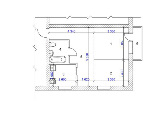 - Площадь кухни 6 м²