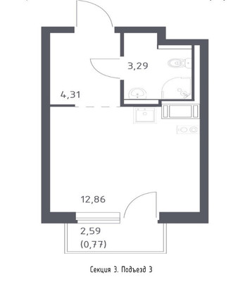 —Жилая площадь - 12,86 кв. м —Прихожая - 4,31 кв. м —Ванна - 3,29 кв. м —Высота потолков - 2.78 м , витражное остекление.—Тип дома - ЖБ/Монолит—Полная чистовая отделка.