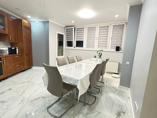 В квартире был выполнен качественный ремонт с использованием дорогих материалов и капитальной заменой коммуникаций (электрика,трубы,канализация).Организованная планировка позволяет комфортно обустроить пространство для жизни:5 просторных мастер-спален со своим санузлом и гардеробом, светлая гостиная площадью 56 м, просторная кухня . Также в квартире имеются : 2 Постирочные , 2 большие лоджии и 3 балкона (все полностью застекленное), сауна (на 2-4 чел), и несколько подсобных помещений.