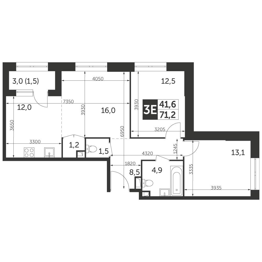 - Общая площадь 71.2 м²