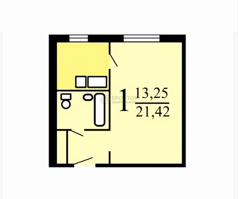 - Общая площадь 21.42 м²