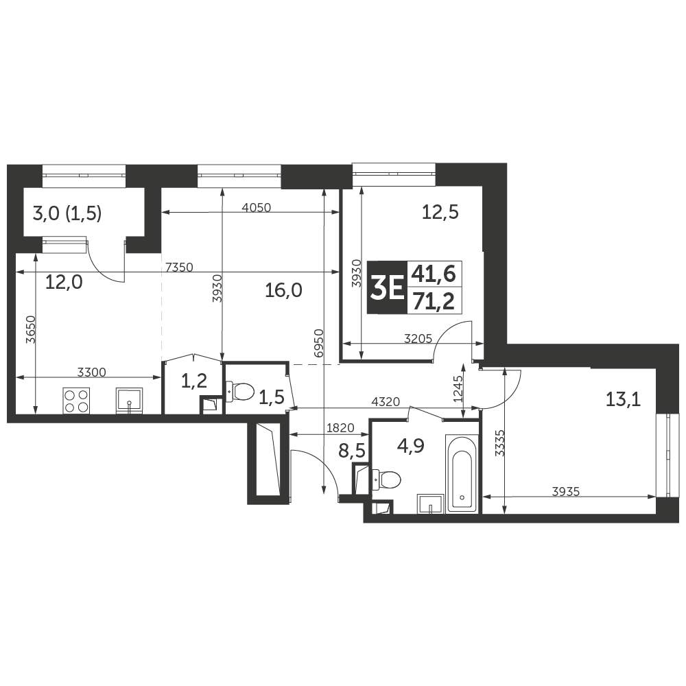 - Общая площадь 71.2 м²