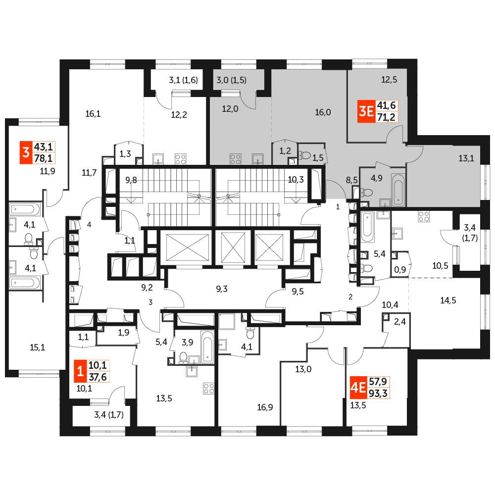 - Жилая площадь 41.6 м²