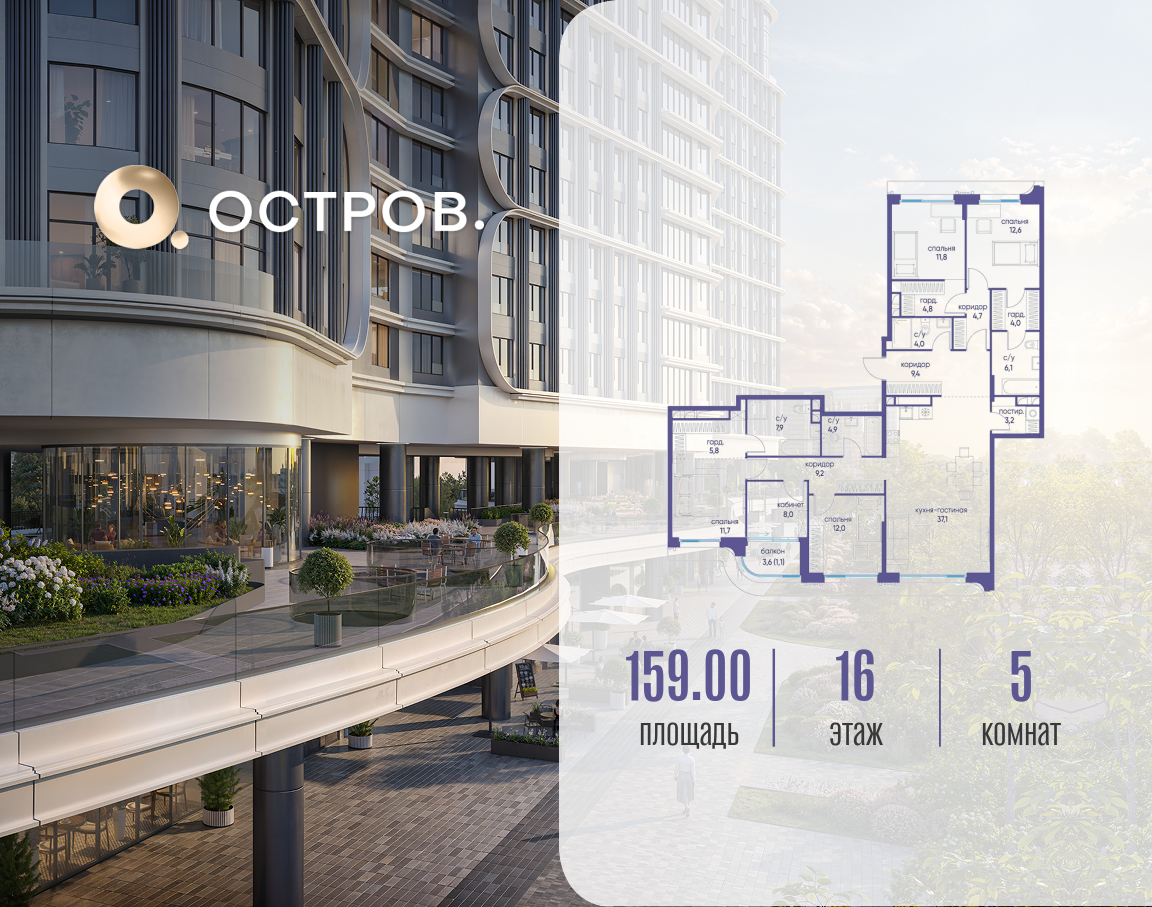 Продаётся многокомнатная квартира от застройщика: общая площадь 159.02 м², жилая 56.10 м², кухня 37.10 м², 16, жилой квартал «Остров 7», корпус 2 (7 квартал) (секция 3). срок сдачи: 4-кв. 2025. , 4 санузла: 4 совмещенных. В жилой зоне 2 больших окна на одну сторону, хорошая инсоляция. Позвоните сейчас и забронируйте квартиру! Купите квартиру в доме у прибрежного парка, в квартале ОСТРОВ.7. Это семь корпусов премиум- и бизнес-класса в одном из лучших мест ОСТРОВА - между бульваром и парком, поблизости от реки. Стильные корпуса имеют узнаваемый вид благодаря бионической пластике фасадов, приподнятых над землей. Для жителей предусмотрены детский клуб, фитнес-рум, коворкинг, переговорные, лаунжи. На крышах устроены видовые общественные пространства с зонами для отдыха и спорта. Двор расположен на двух уровнях: нижний ландшафтный парк и верхняя городская терраса. ОСТРОВ.7 - часть жилого комплекса на западе Москвы, в 15 минутах езды от центра. Это настоящий заповедник посреди большого города, в окружении реки и 650 га заповедников. Здесь все необходимое находится по соседству: от детского сада до супермаркета, от фитнес-зала до серфинг-центра. На территории созданы все условия для отдыха и общения: клубная инфраструктура в домах и дворы-парки, набережные и променады, маршруты для спортсменов, детей и возрастных жителей. В нескольких минутах ходьбы расположена станция метро "Терехово" БКЛ. На автомобиле - 10 минут до Москва-Сити и 15 минут до Садового кольца.
