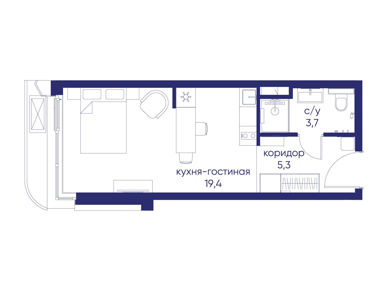 - Общая площадь 28.42 м²