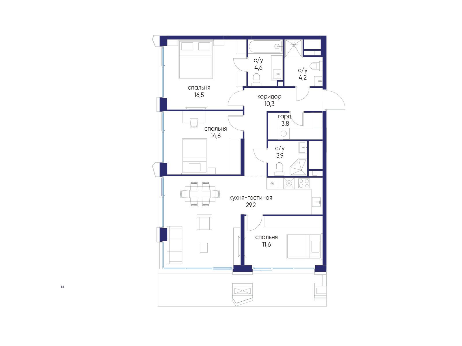 - Общая площадь 98.72 м²